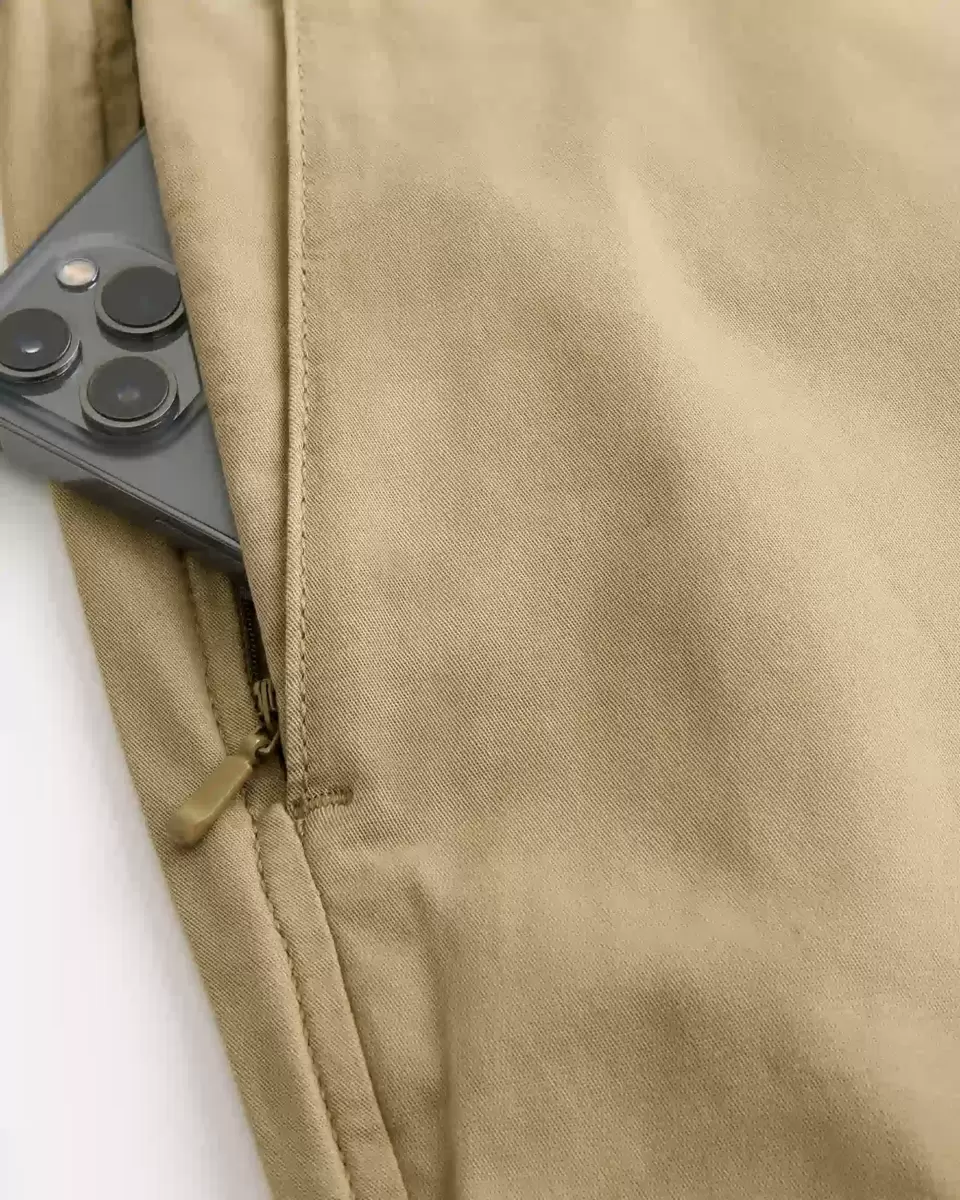 Pantalon chino en sergé extensible ultra-confortable, coupe droite de haut en bas. Poches, dont une poche droite zippée. Importé.