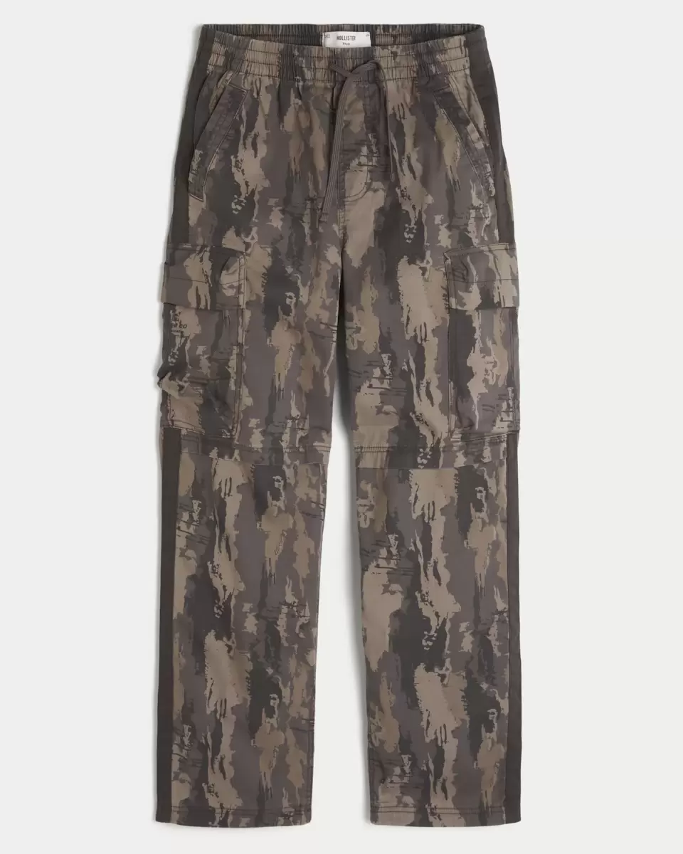Pantalon de survêtement classique et confortable, avec une jambe ample et un cordon de serrage à la taille. Poches cargo latérales, logo à droite et motif camouflage intégral. Importé.