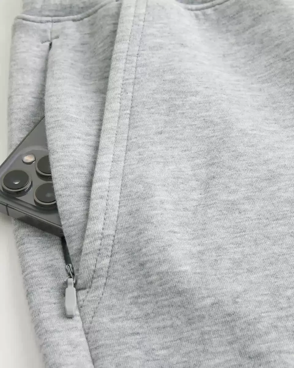 Pantalon de survêtement en polaire ultra doux avec cordon de serrage à la taille et jambes amples. Poches, poche droite zippée. Importé.