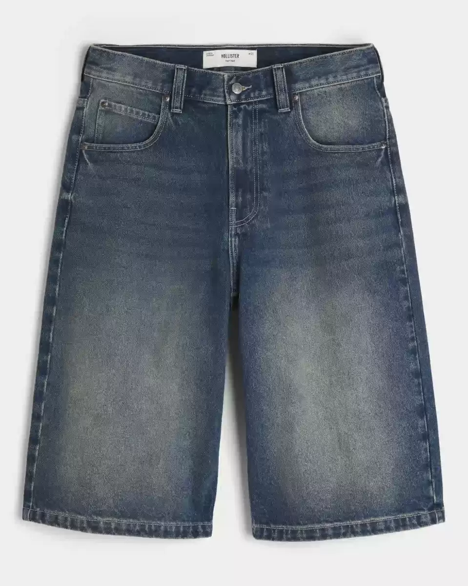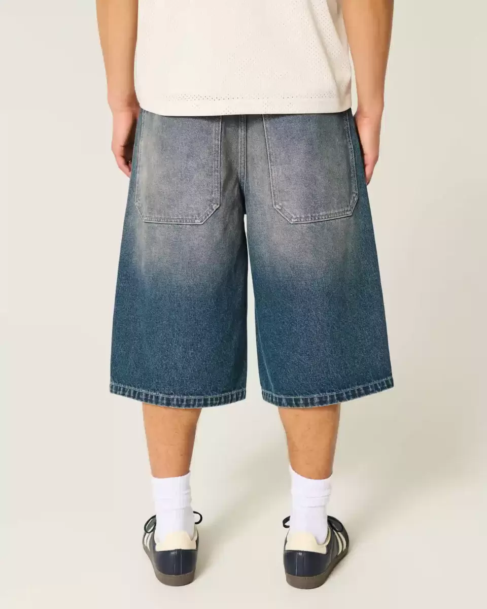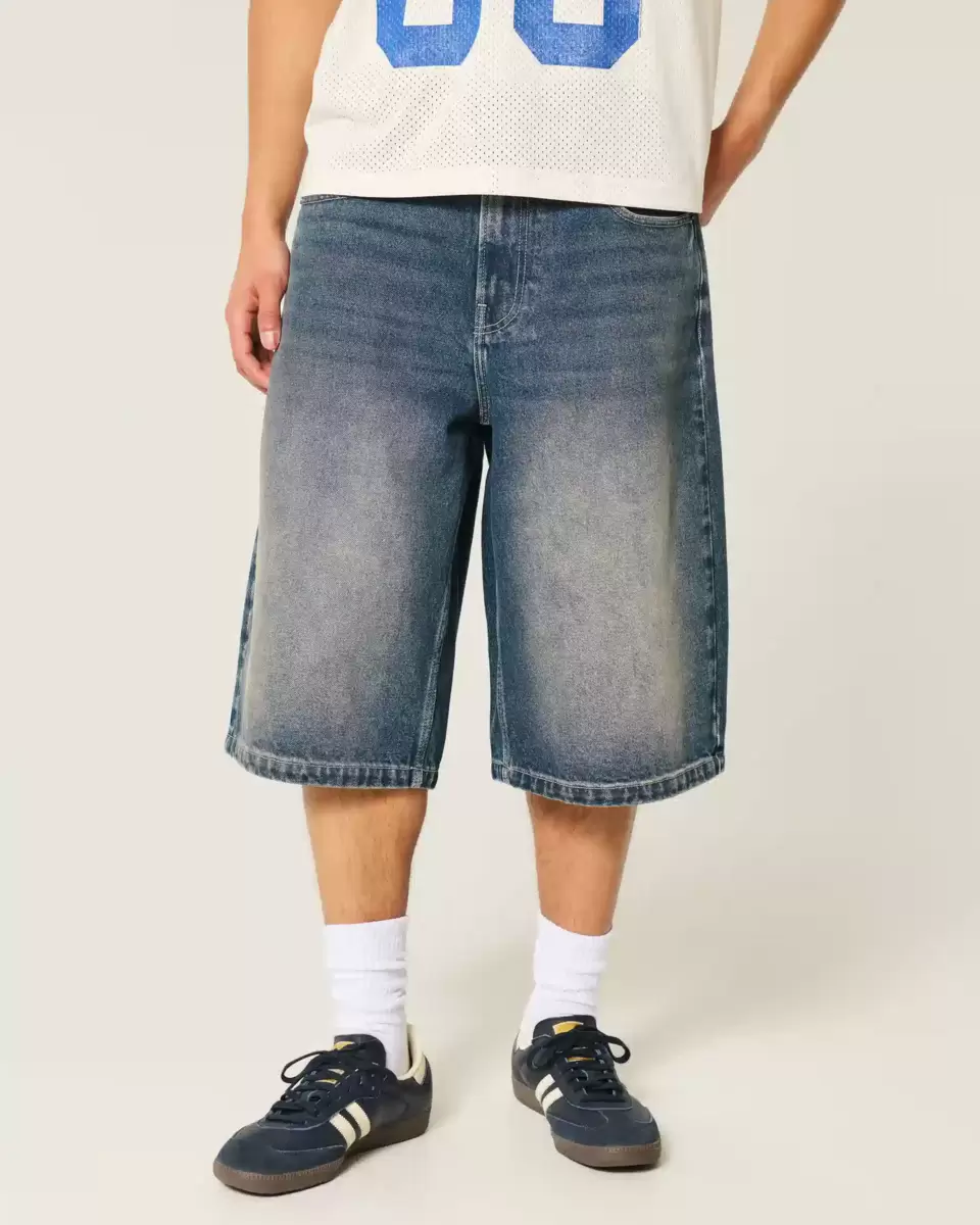 Pantalon classique en denim à jambe ample. Délavage moyen avec décoloration et effets de moustaches. Importé.