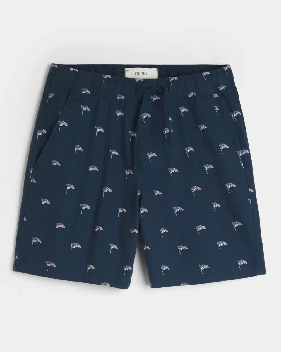 Short ultra-confortable avec cordon de serrage à la taille et motif drapeau américain intégral. Poches, longueur au-dessus du genou. Importé.