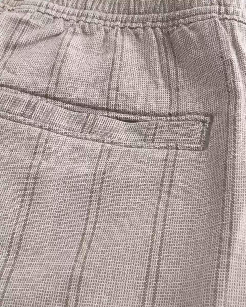 Short ultra-confortable en doux mélange coton-lin. Cordon de serrage à la taille, poches, entrejambe de 20 cm. Longueur au-dessus du genou. Importé.