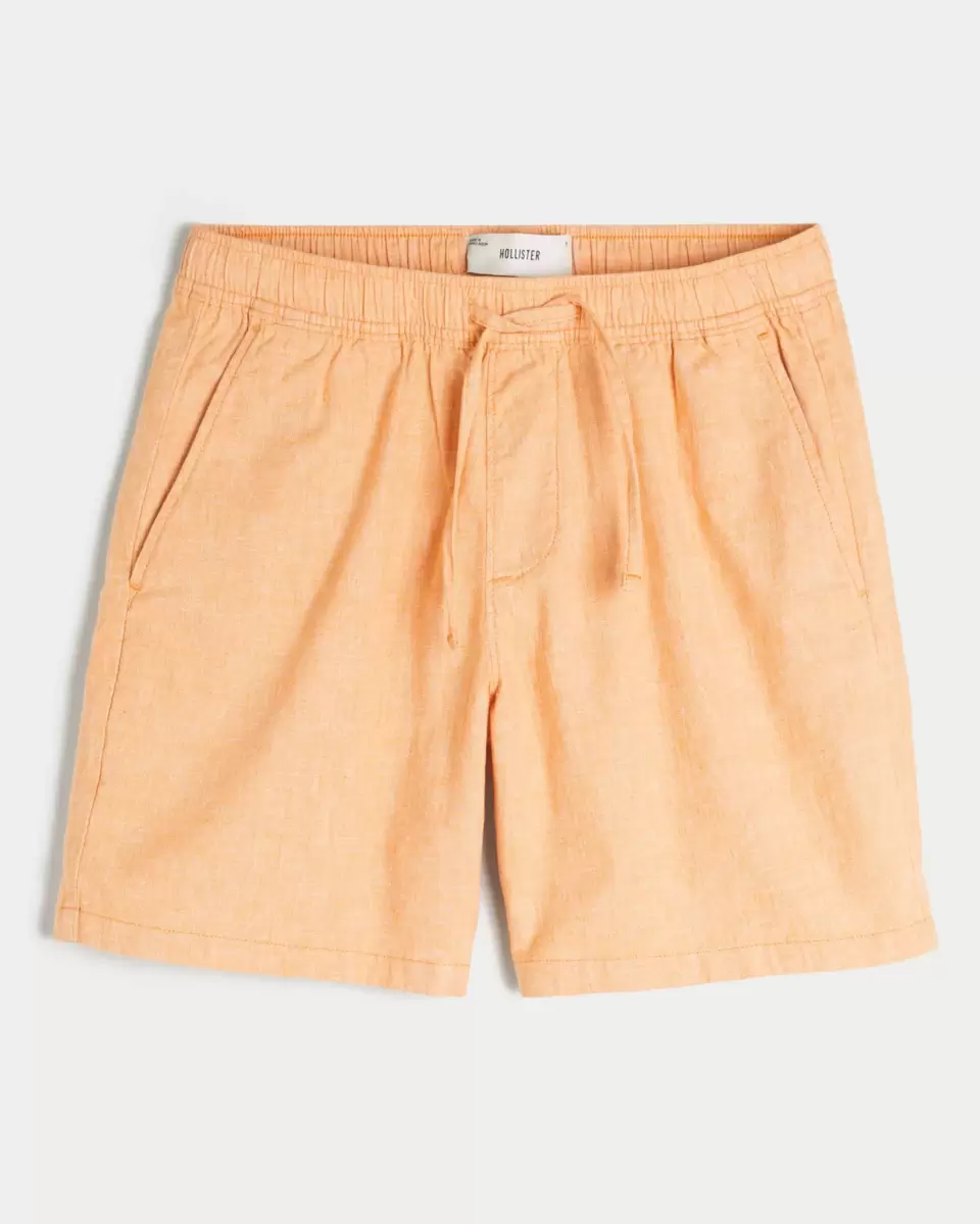 Short ultra-confortable en doux mélange coton-lin. Cordon de serrage à la taille, poches, entrejambe de 20 cm. Longueur au-dessus du genou. Importé.