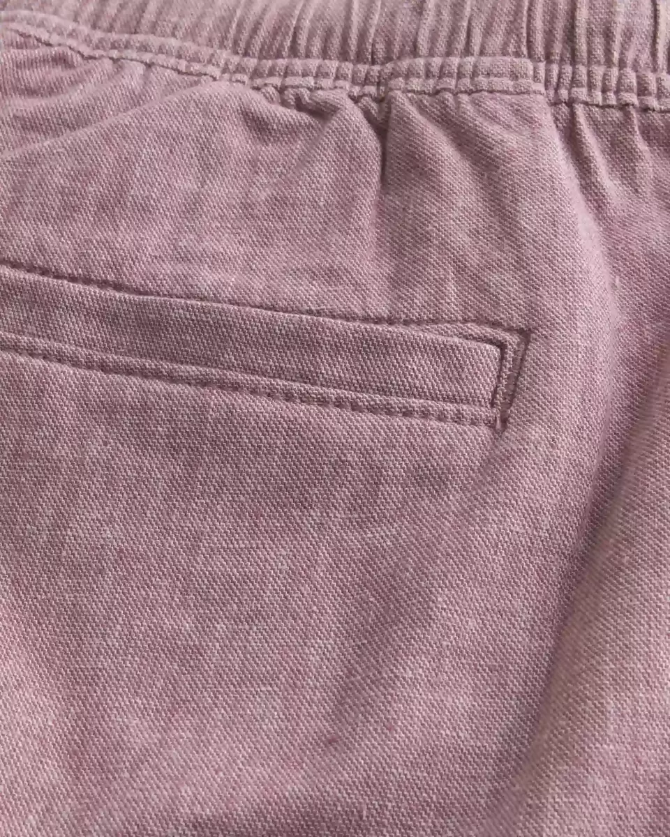 Short ultra-confortable en doux mélange coton-lin. Cordon de serrage à la taille, poches, entrejambe de 20 cm. Longueur au-dessus du genou. Importé.