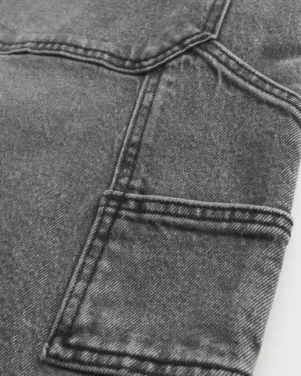 Short de peintre en denim confortable, avec jambe ample, boucle à gauche et poches supplémentaires. Décoloration.