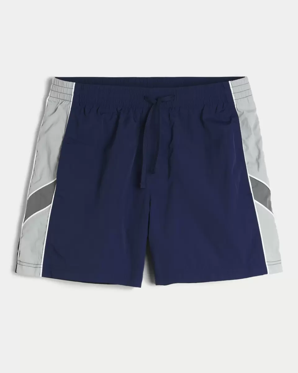 Short de football confortable avec cordon de serrage à la taille et longueur mi-cuisse. Détails colorblock, passepoil. Importé.