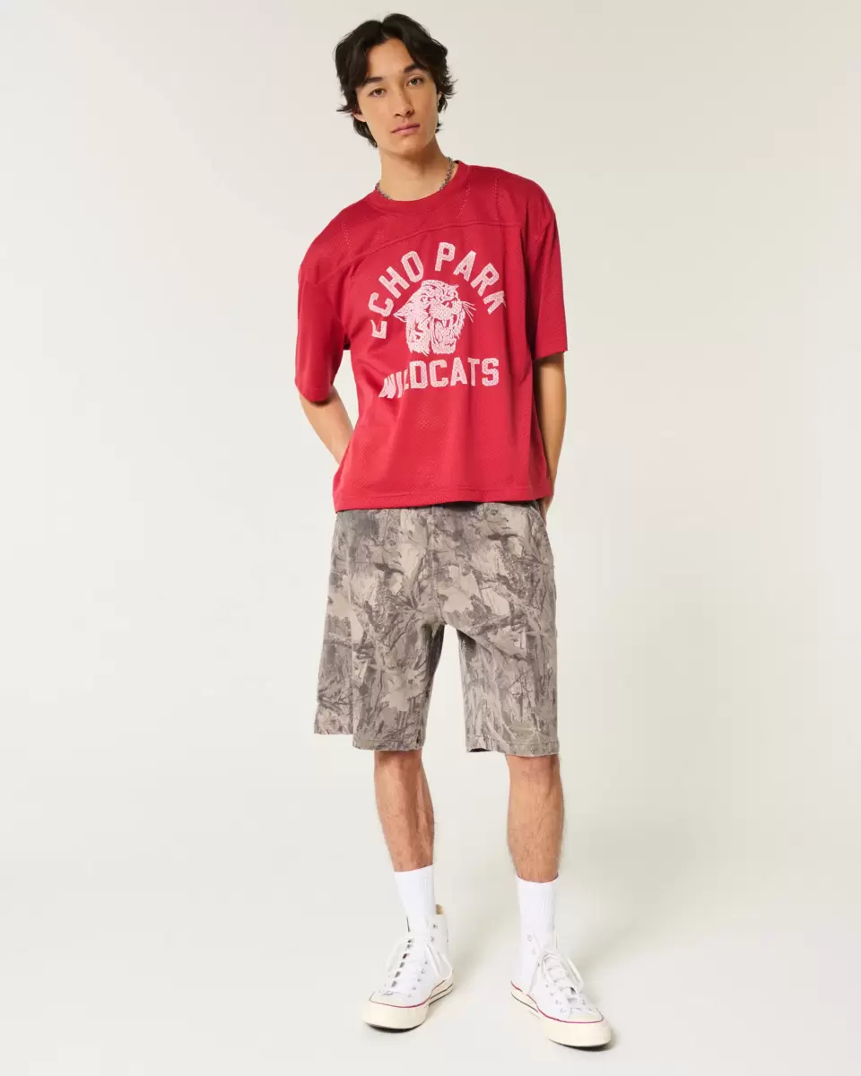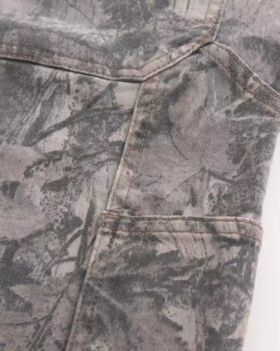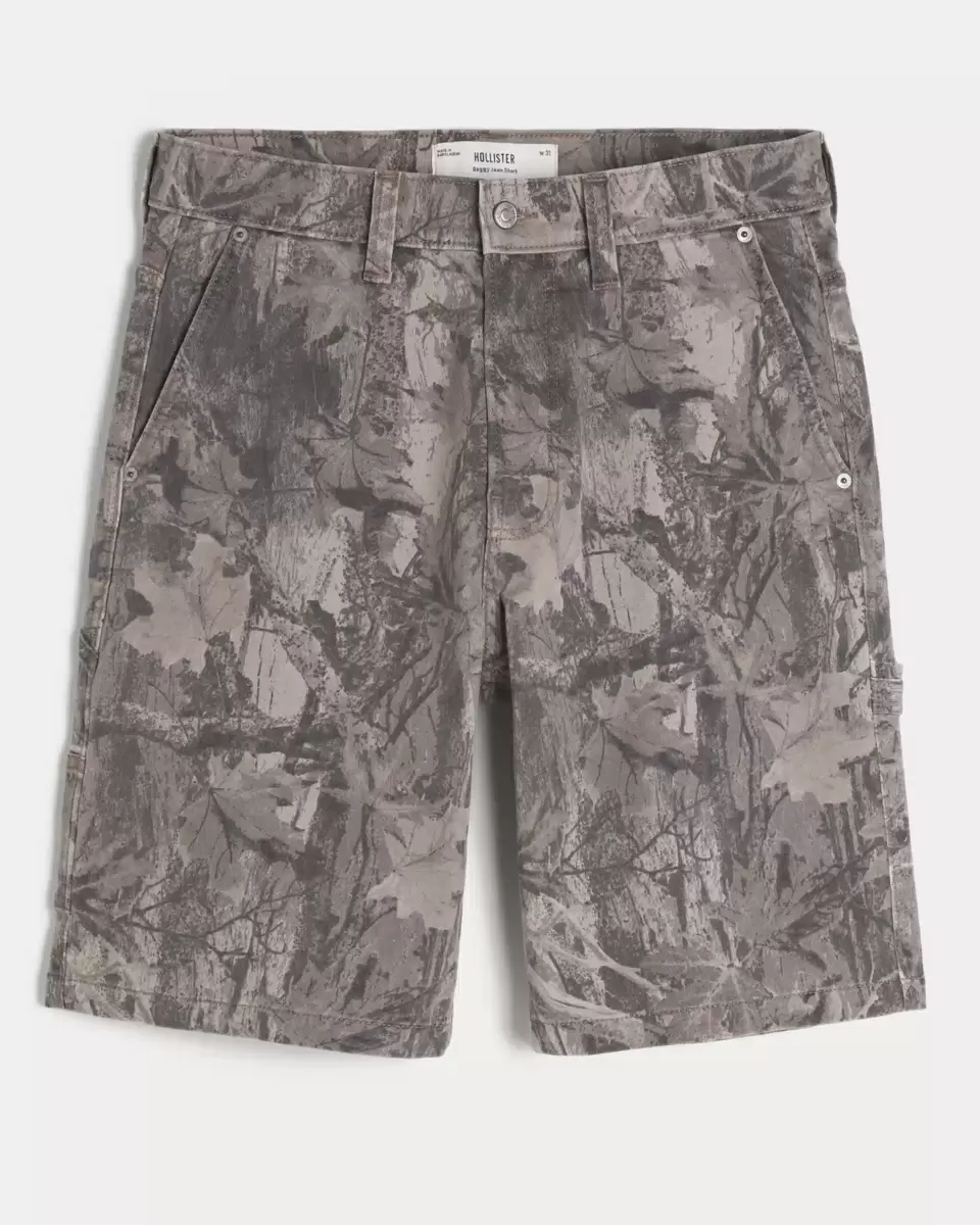 Short en jean confortable avec jambe ample, passants à gauche et poches supplémentaires. Motif camouflage intégral. Importé.