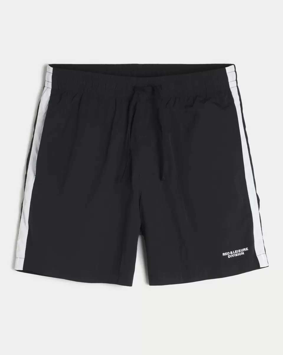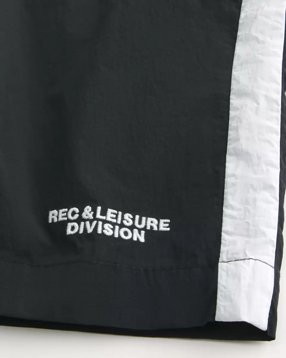 Short de survêtement ultra-confortable 100 % nylon, doté d’un cordon de serrage à la taille et d’une poche droite zippée. Broderie « Rec & Leisure Division » sur la jambe gauche. Longueur au-dessus du genou. Importé.