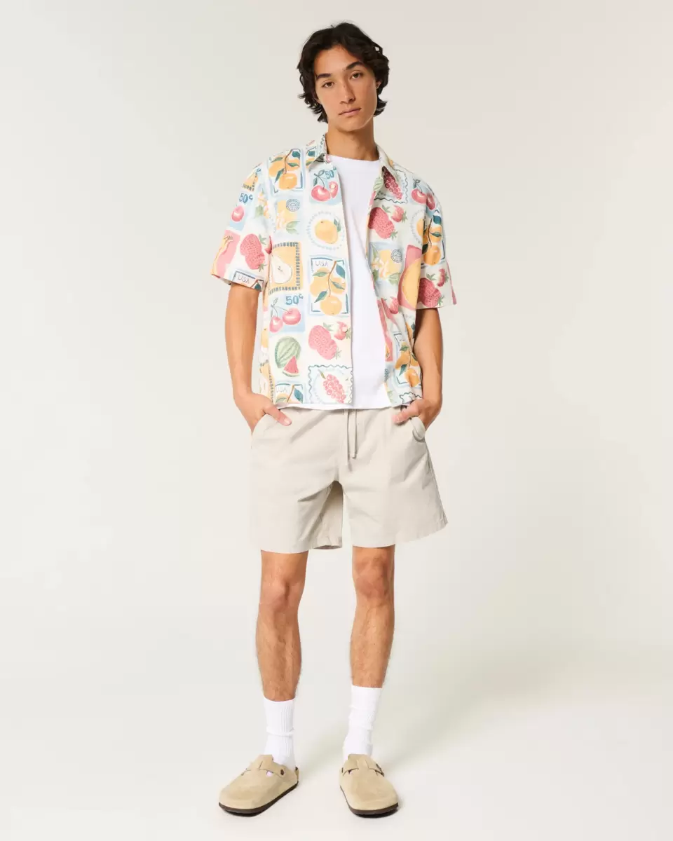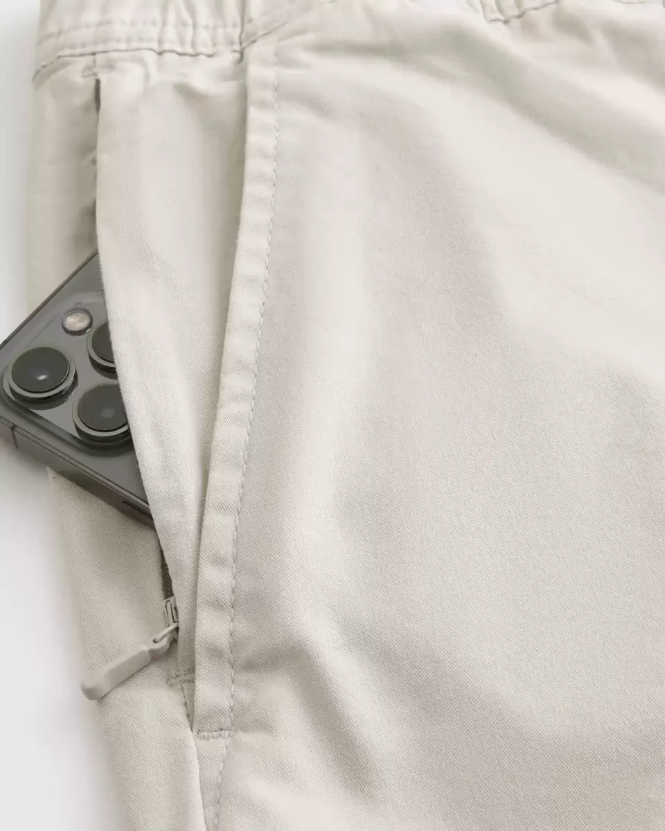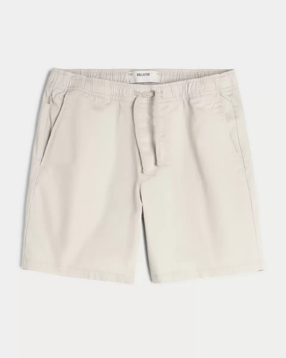 Short en sergé ultra confortable, doté d’un cordon de serrage à la taille. Poche droite zippée, longueur au-dessus du genou. Importé.