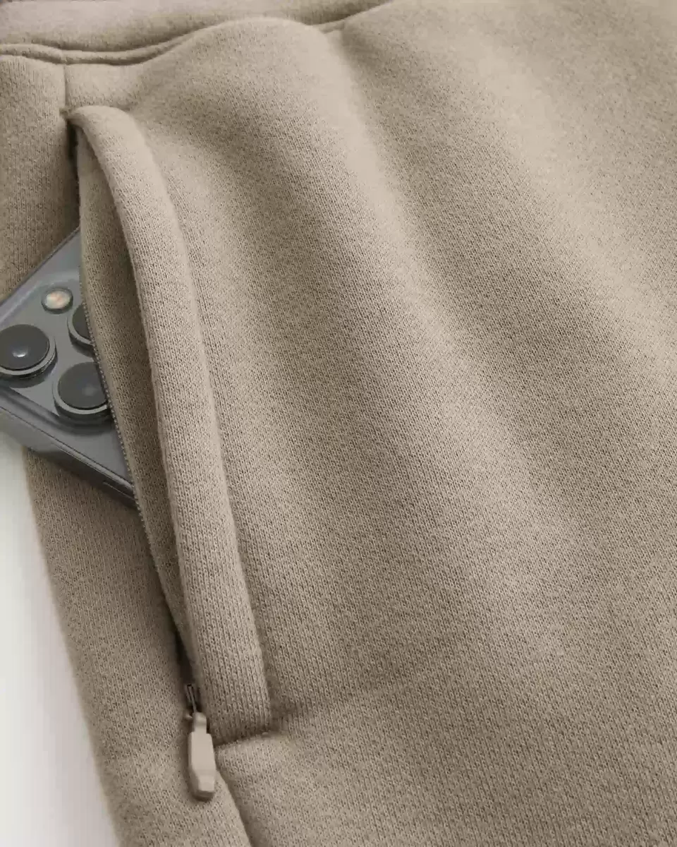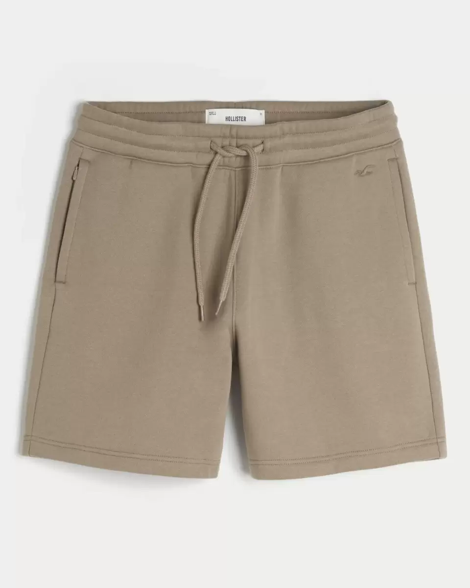 Short en polaire ultra doux, longueur au-dessus du genou et taille avec cordon de serrage. Poches, poche droite zippée, logo brodé. Importé.