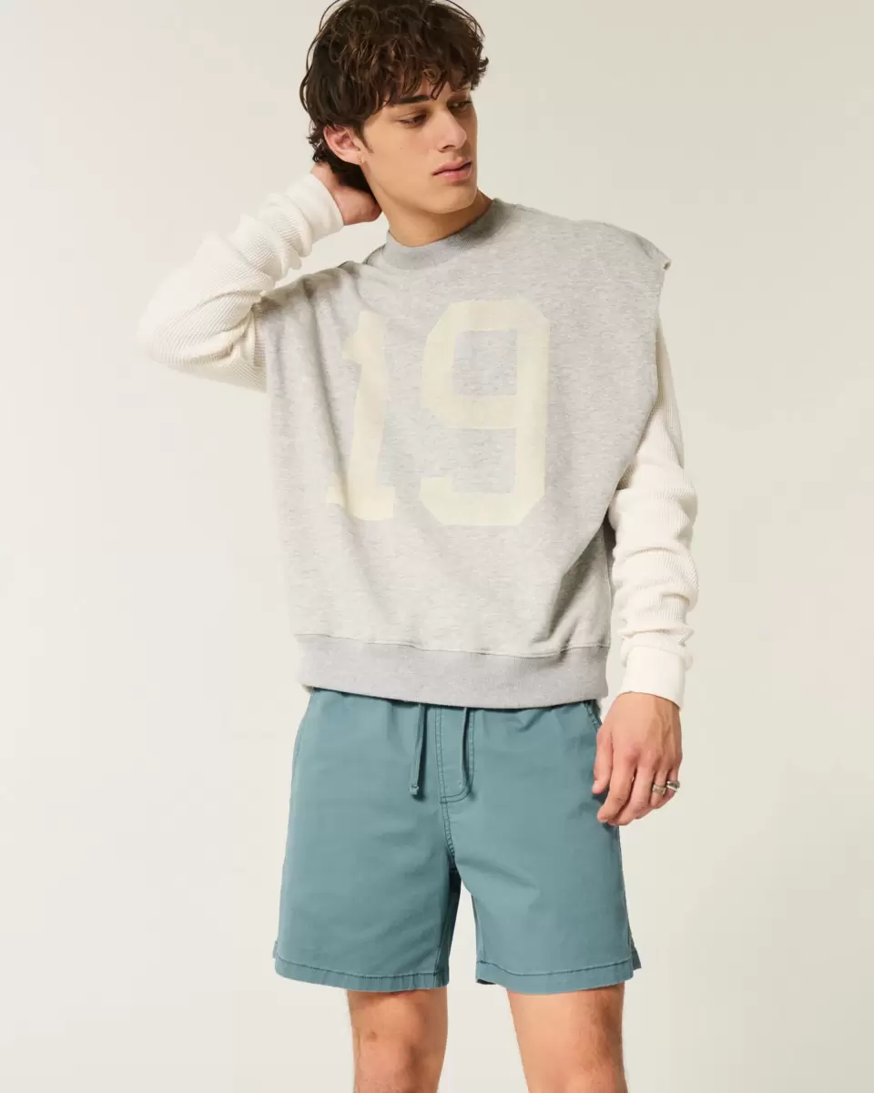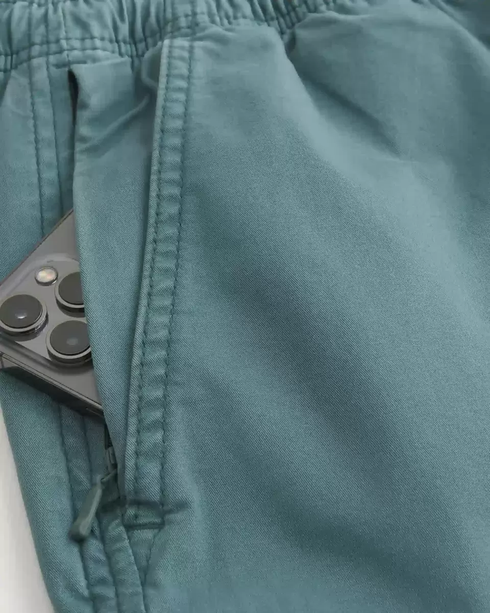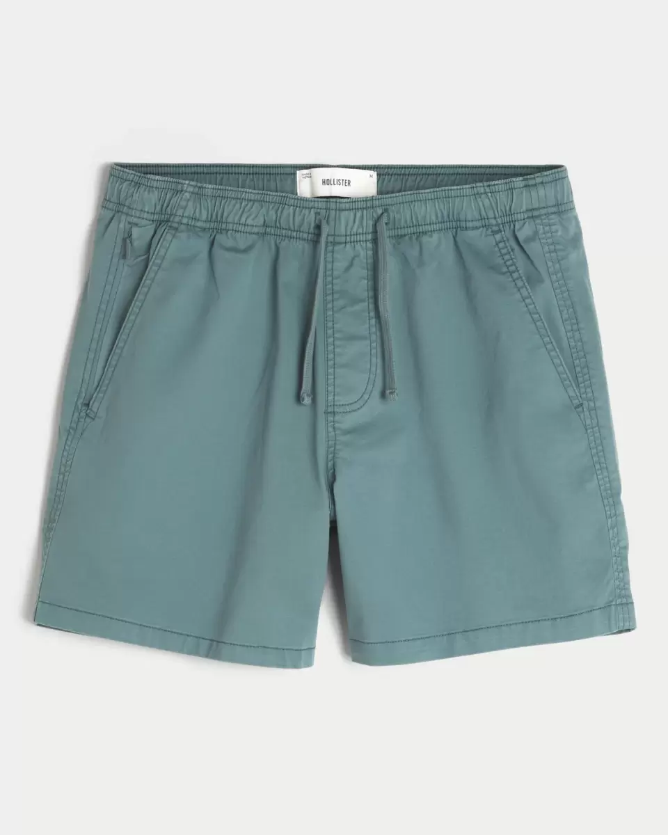 Short confortable en sergé avec cordon de serrage à la taille et longueur mi-cuisse. Poches, poche droite zippée. Importé.