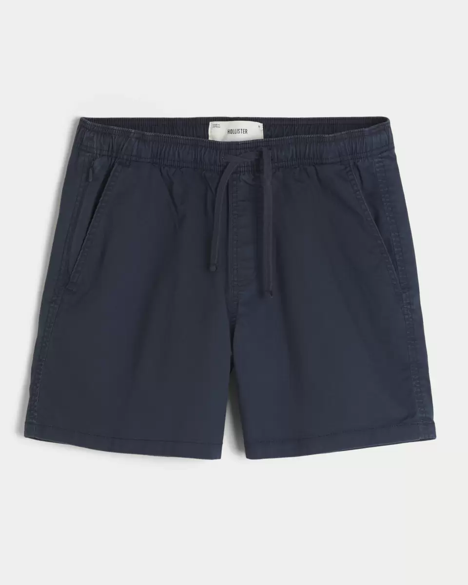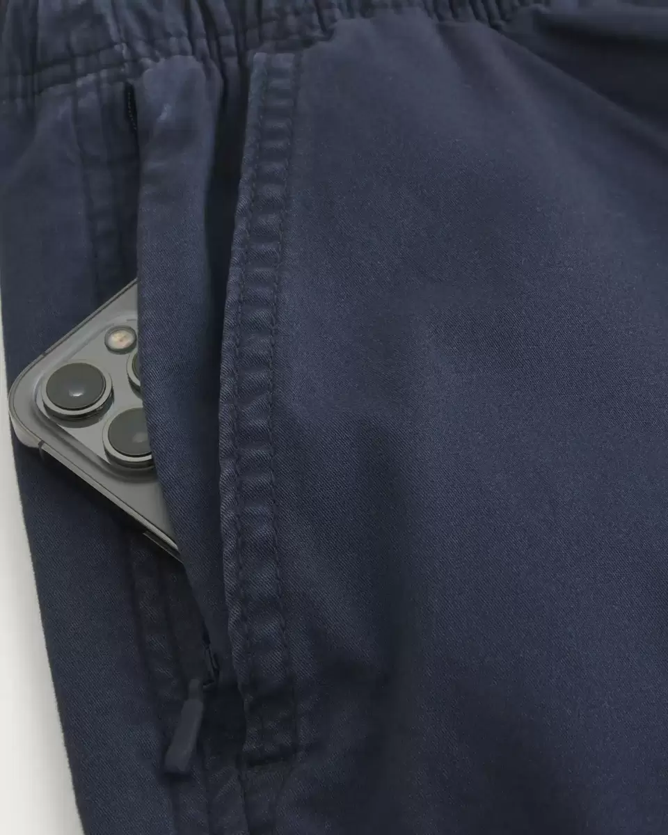 Short confortable en sergé avec cordon de serrage à la taille et longueur mi-cuisse. Poches, poche droite zippée. Importé.