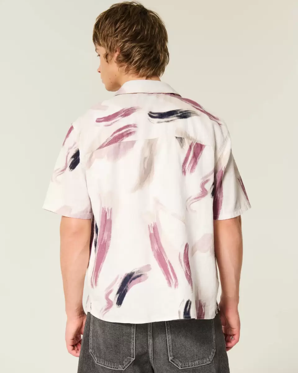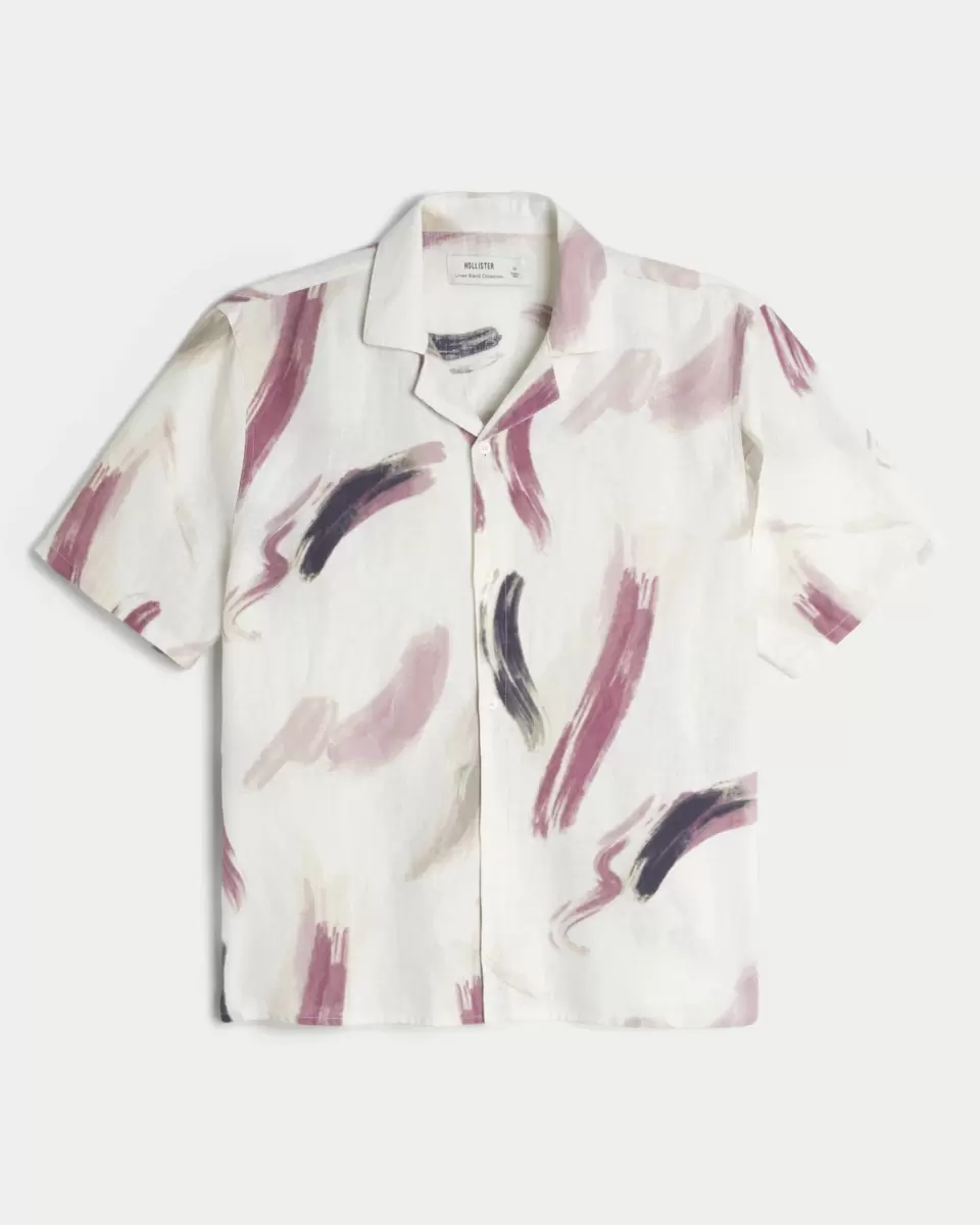 Chemise à manches courtes en lin mélangé à motifs