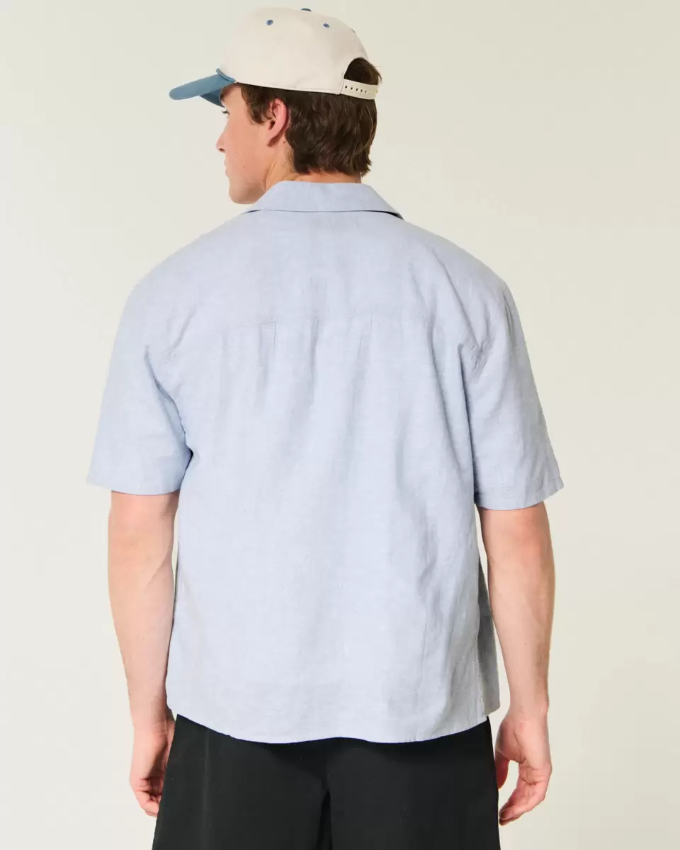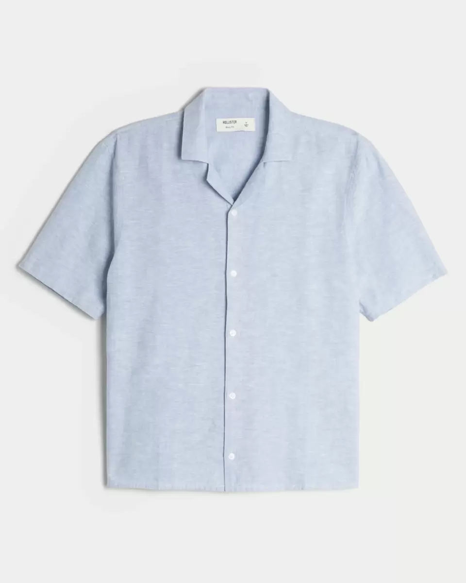 Chemise classique en mélange de lin doux, avec fermeture boutonnée. Manches courtes, col. Coupe carrée. Importé.