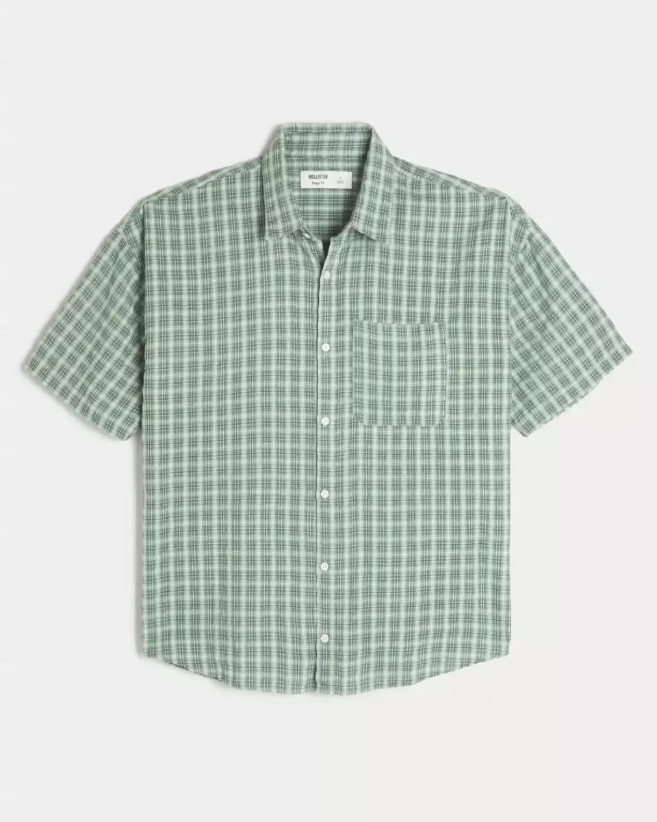 Cette chemise classique et confortable à manches courtes présente un motif à carreaux et une poche poitrine gauche. Fermeture boutonnée sur toute la longueur, col. Coupe ample. Importé.