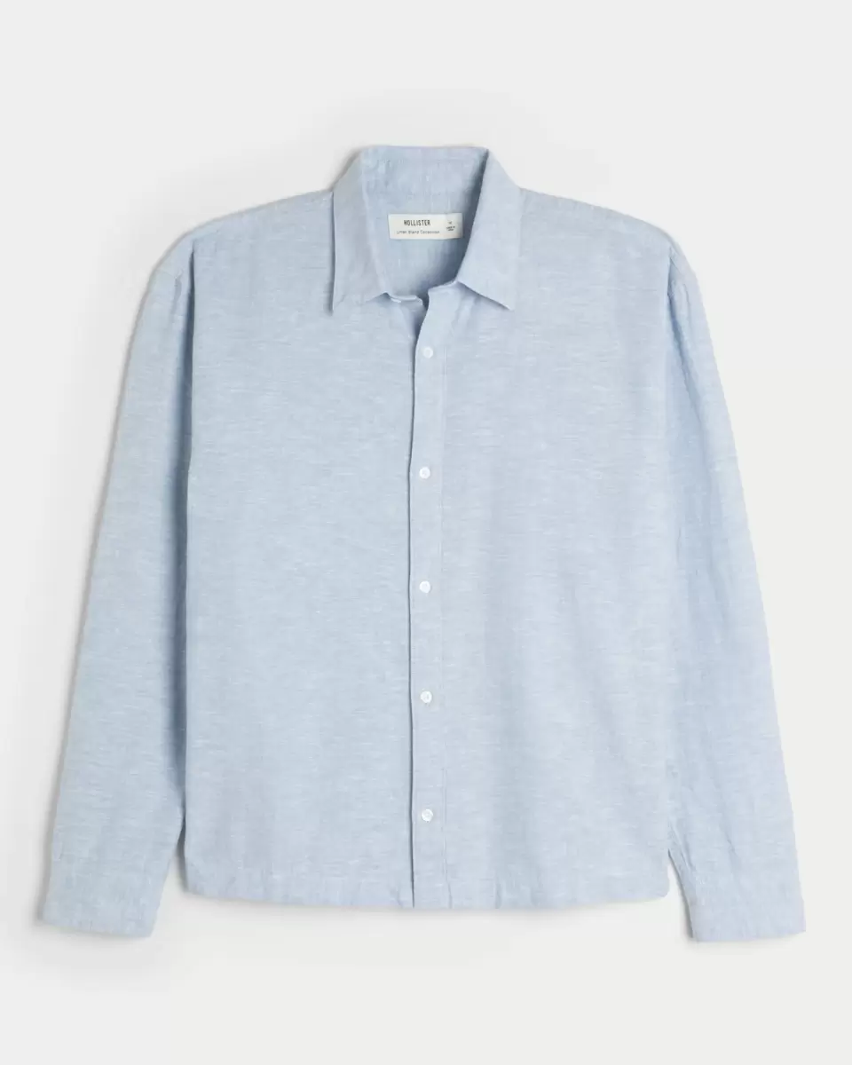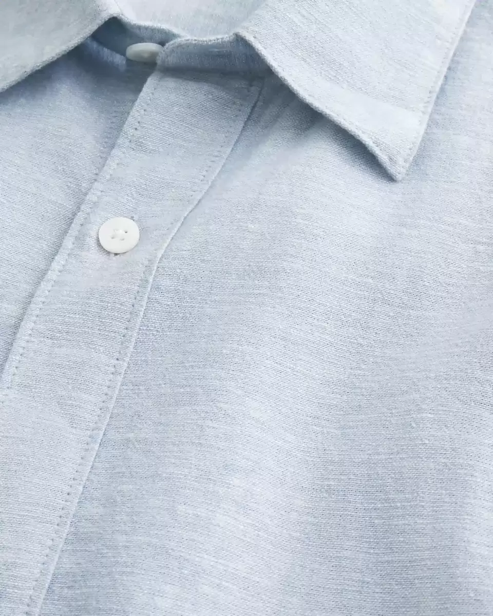 Chemise ultra-confortable en doux mélange lin-coton. Fermeture boutonnée sur toute la longueur, col et manches longues. Importé.