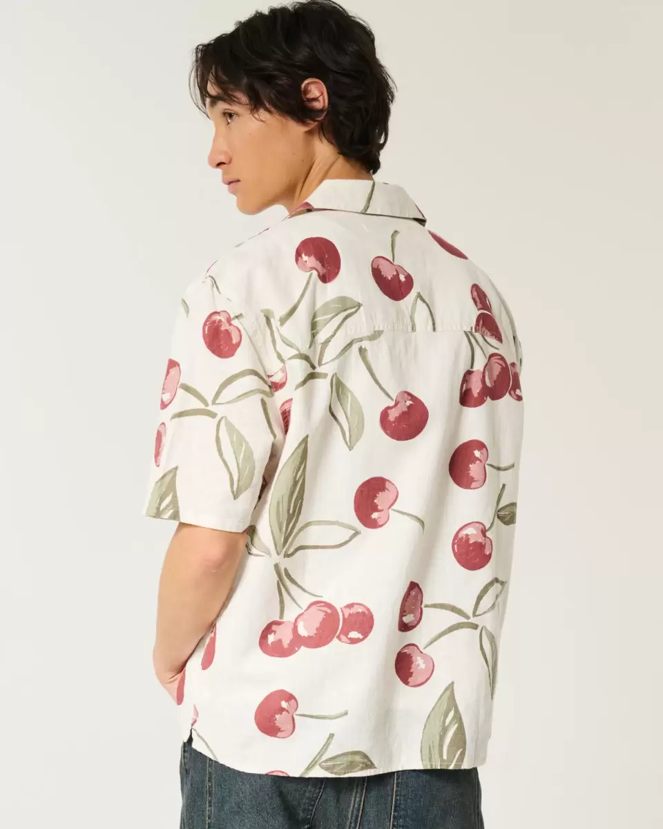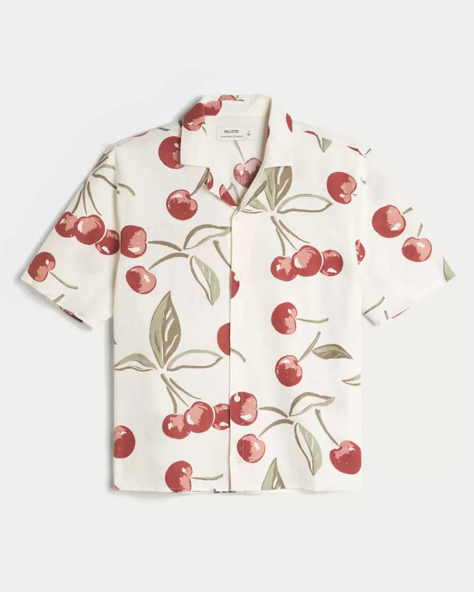 Chemise classique en mélange de lin doux. Fermeture boutonnée sur toute la longueur, col et manches courtes. Coupe carrée. Importé.