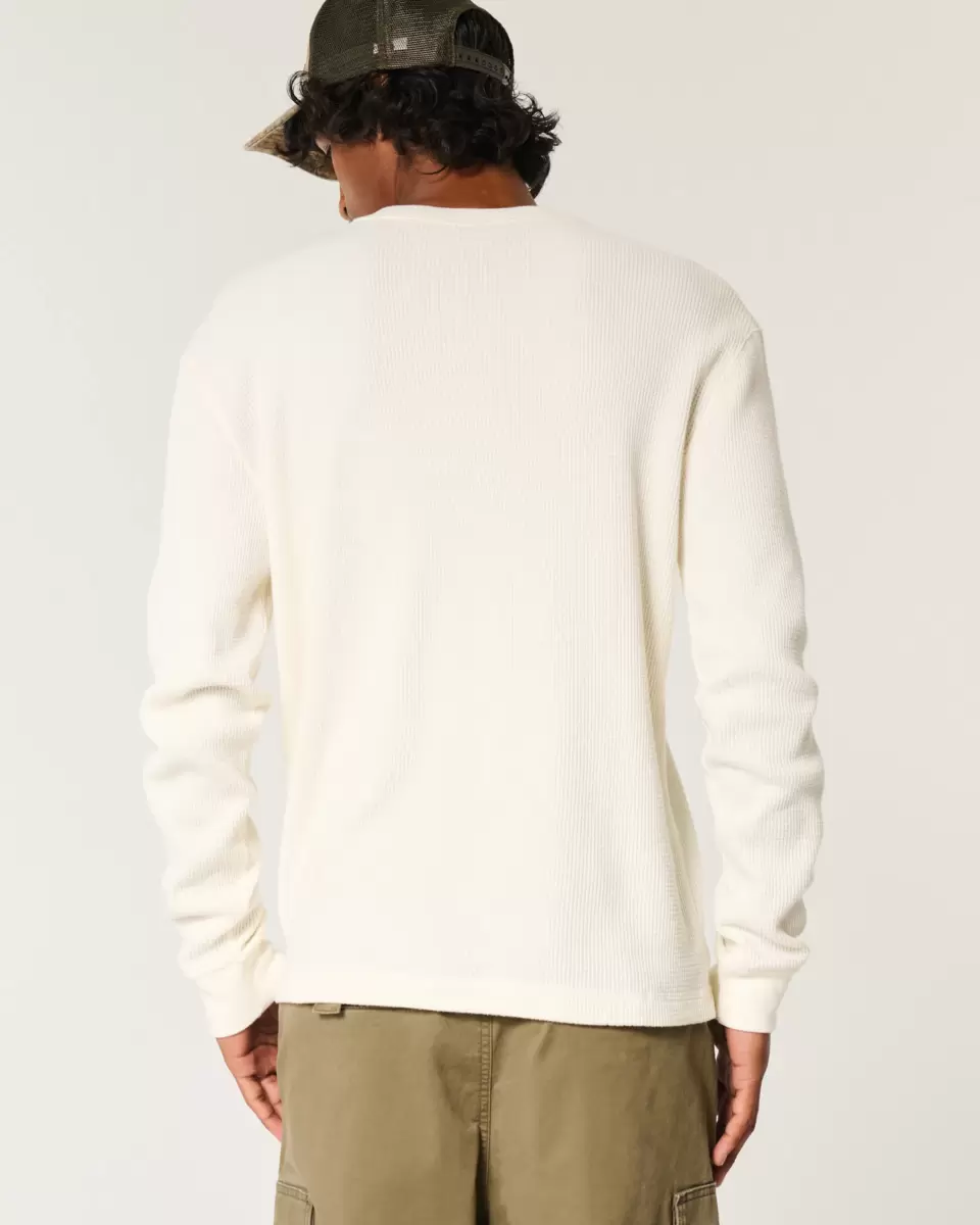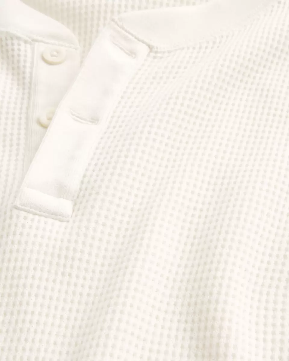 Un Henley classique en tissu gaufré thermique ultra-doux. Encolure ras du cou avec patte de boutonnage, manches longues. Importé.