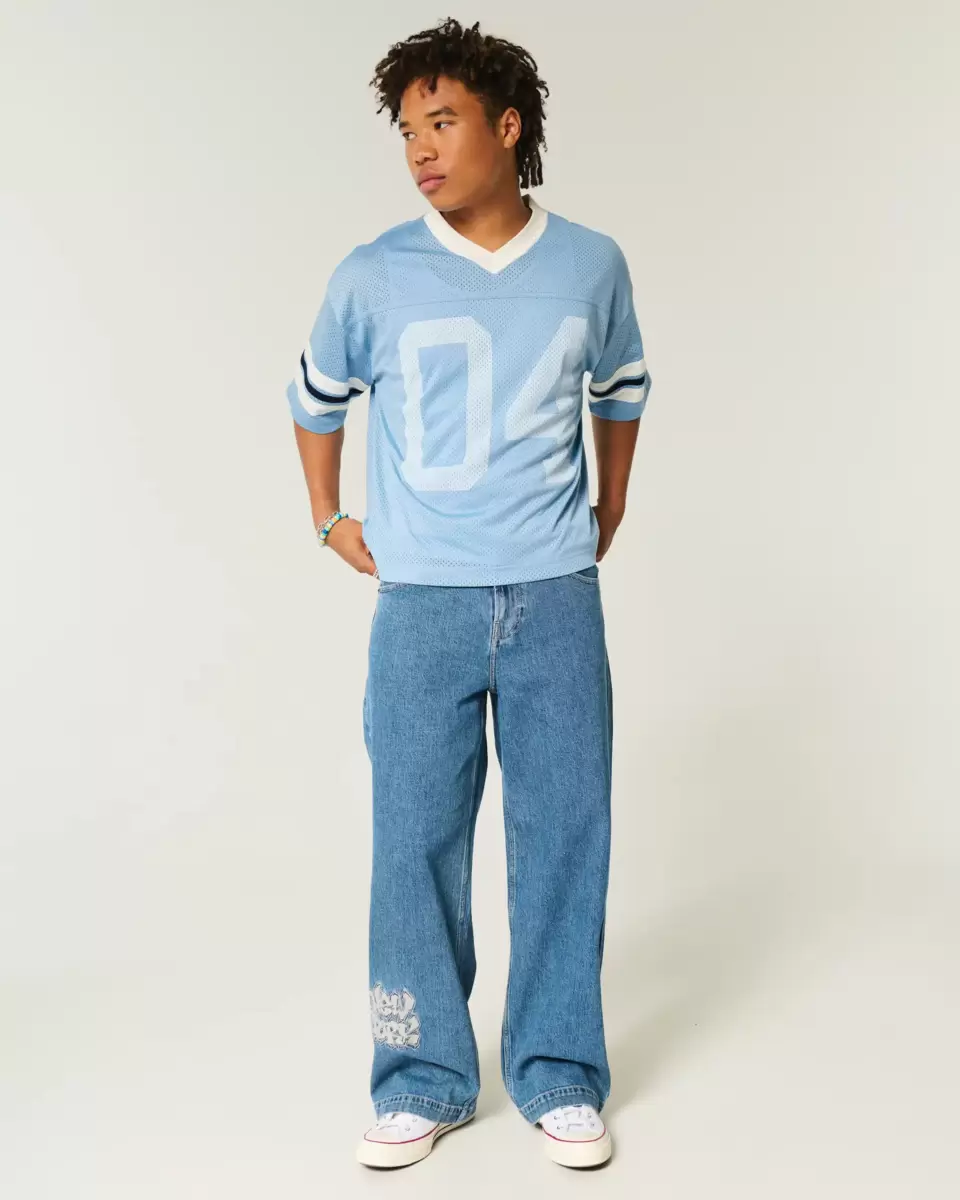 Maillot de football classique en maille, avec imprimé numéro 04 sur le devant et le dos, encolure en V et manches courtes. Coupe courte et ample. Importé.