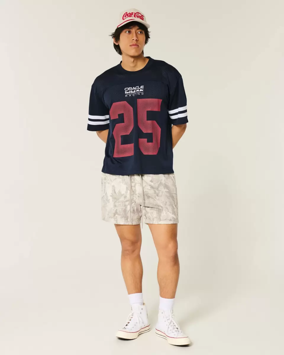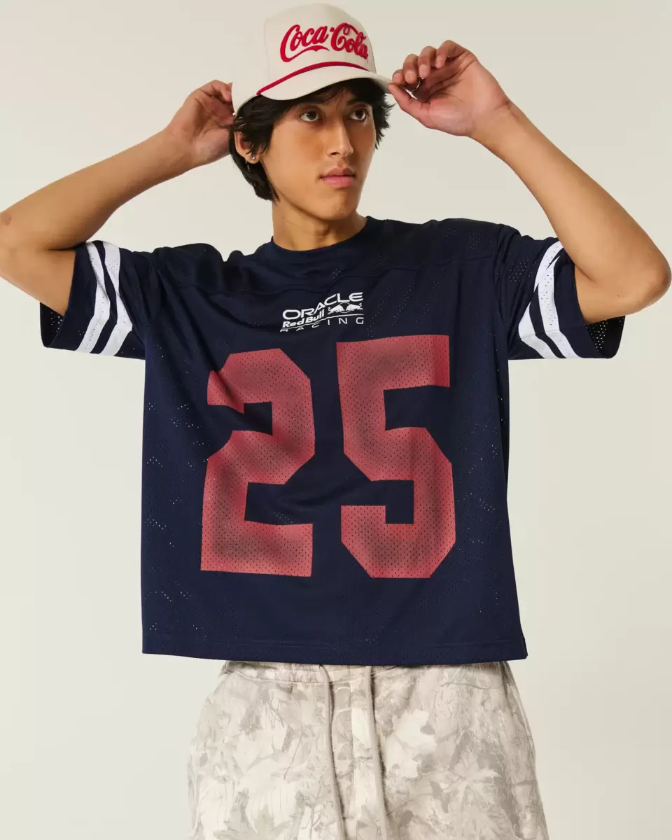 Maillot classique en maille douce, orné de motifs officiels Oracle Red Bull Racing sous licence à l’avant et à l’arrière. Col ras du cou, manches courtes. Coupe courte et ample. Importé.