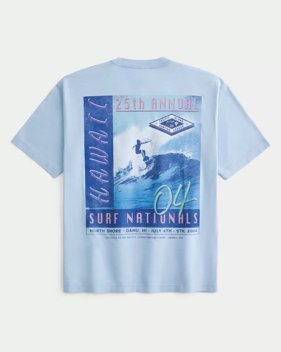 T-shirt 100 % coton ultra doux, orné d’un imprimé Hawaii Surf Nationals sur la poitrine gauche et dans le dos. Encolure ras du cou, manches courtes. Coupe ample. Importé.