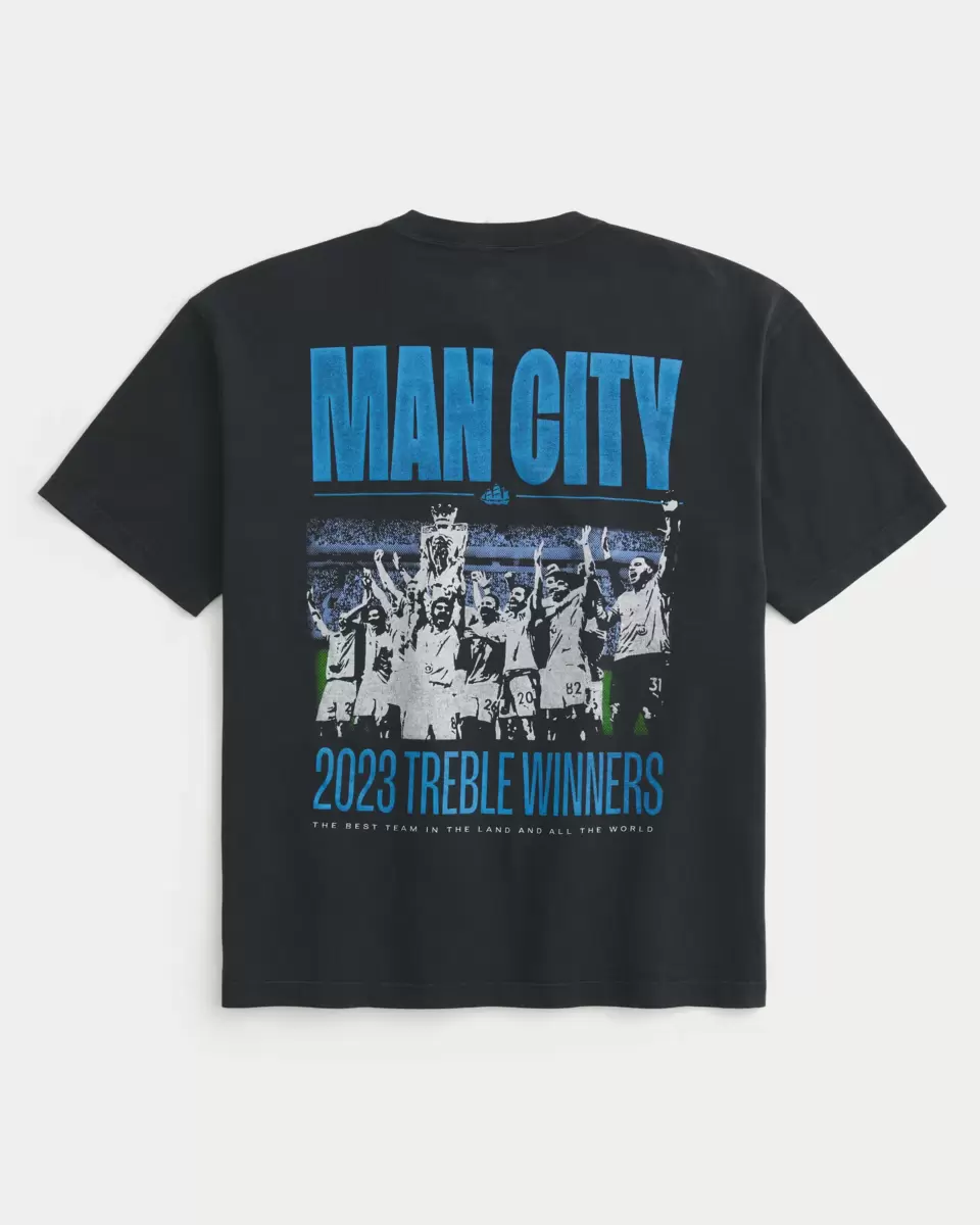 T-shirt 100 % coton ultra doux, orné de motifs officiels Manchester City sous licence sur le devant et le dos. Col ras du cou, manches courtes. Importé.