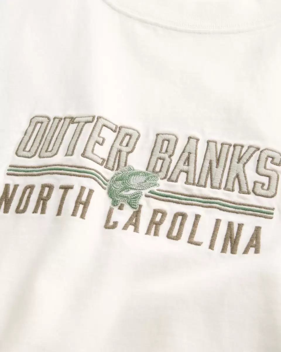 T-shirt ultra doux et épais, orné d’un motif brodé représentant la destination Outer Banks en Caroline du Nord au centre de la poitrine. Encolure ras du cou, manches courtes. Coupe carrée. Importé.