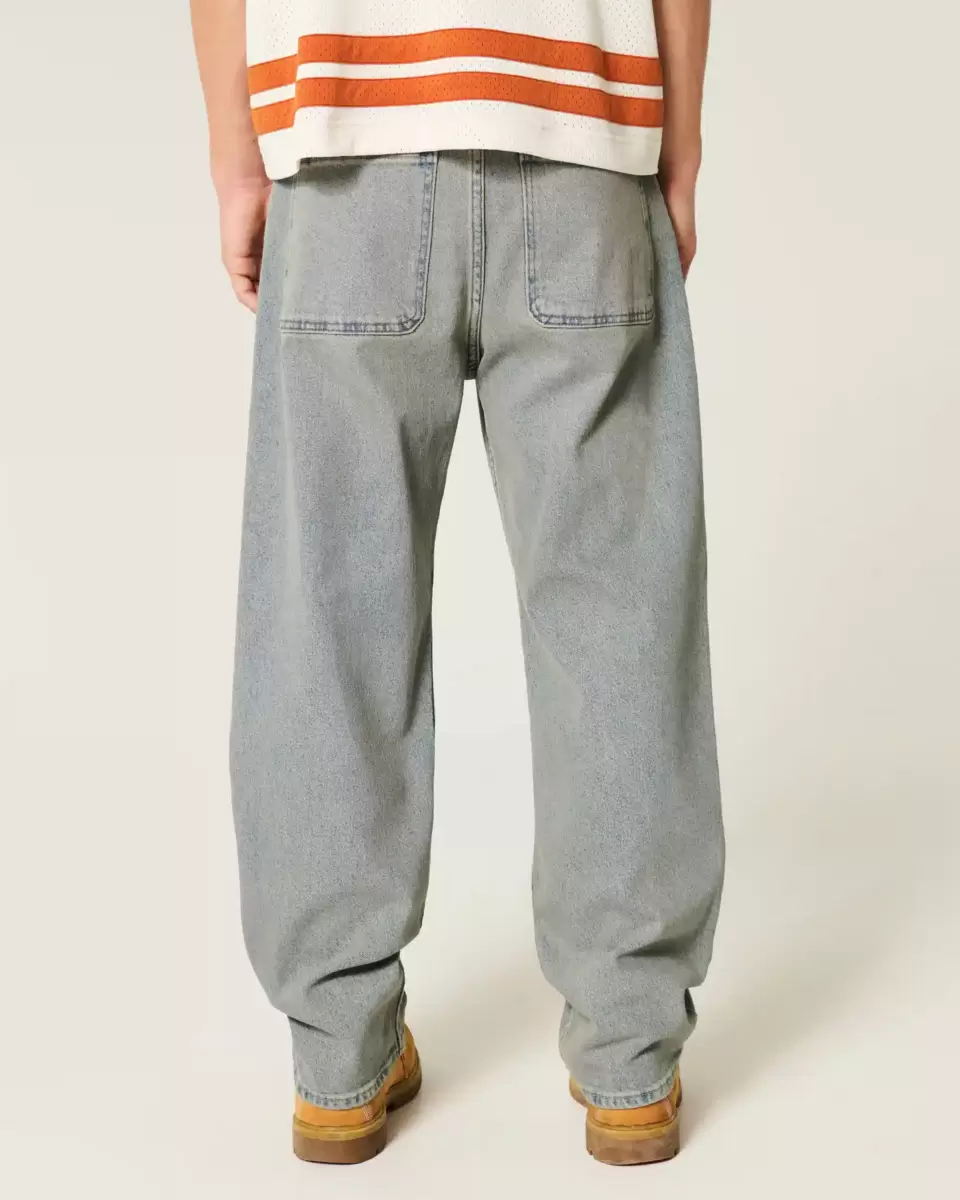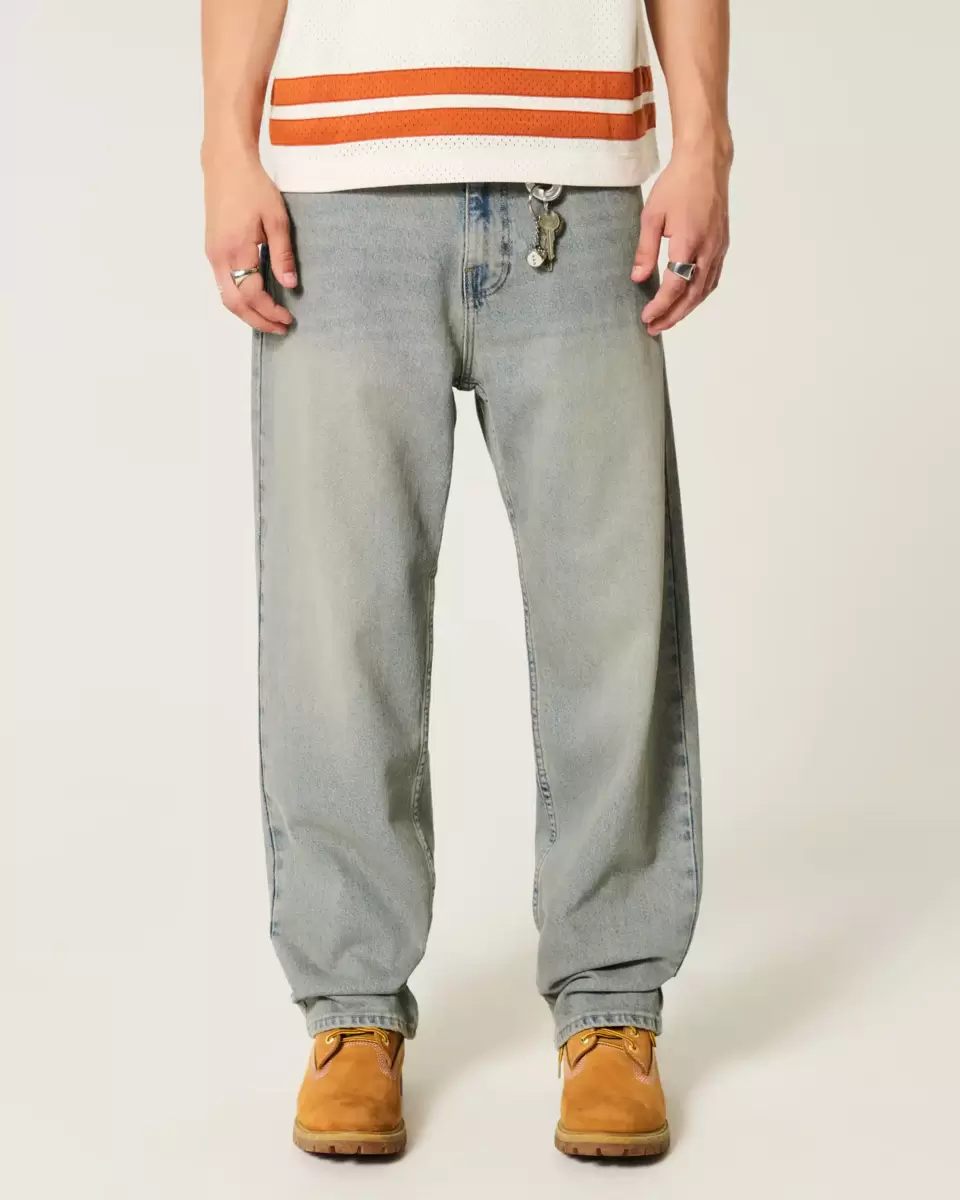 Jean confortable et extensible, coupe ample. Denim clair délavé avec effet moustaches. Importé.