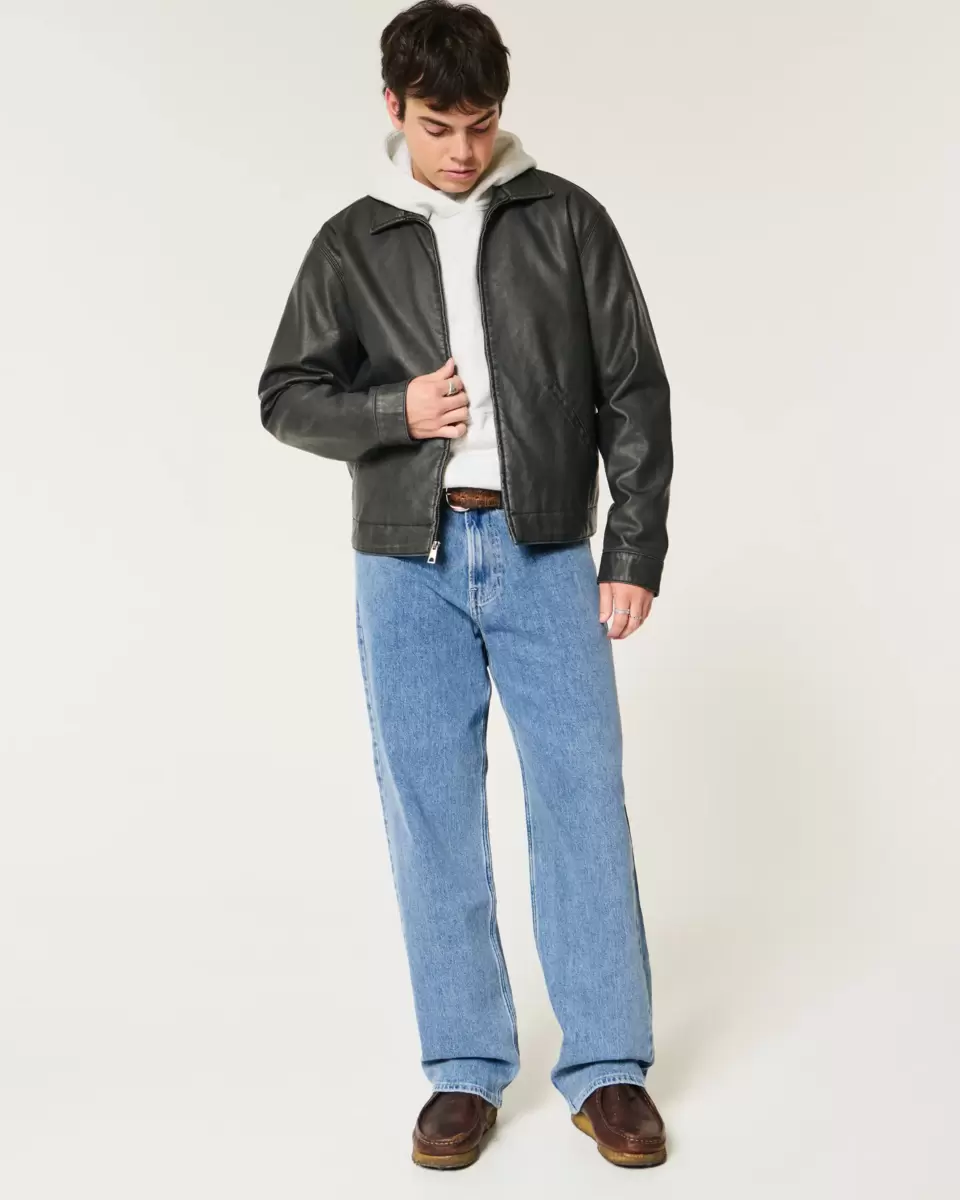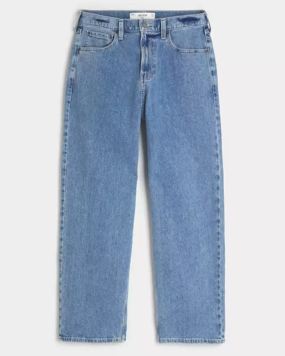 Jean en denim ultra-confortable, coupe ample et style emblématique à 5 poches. Délavage clair. Importé.