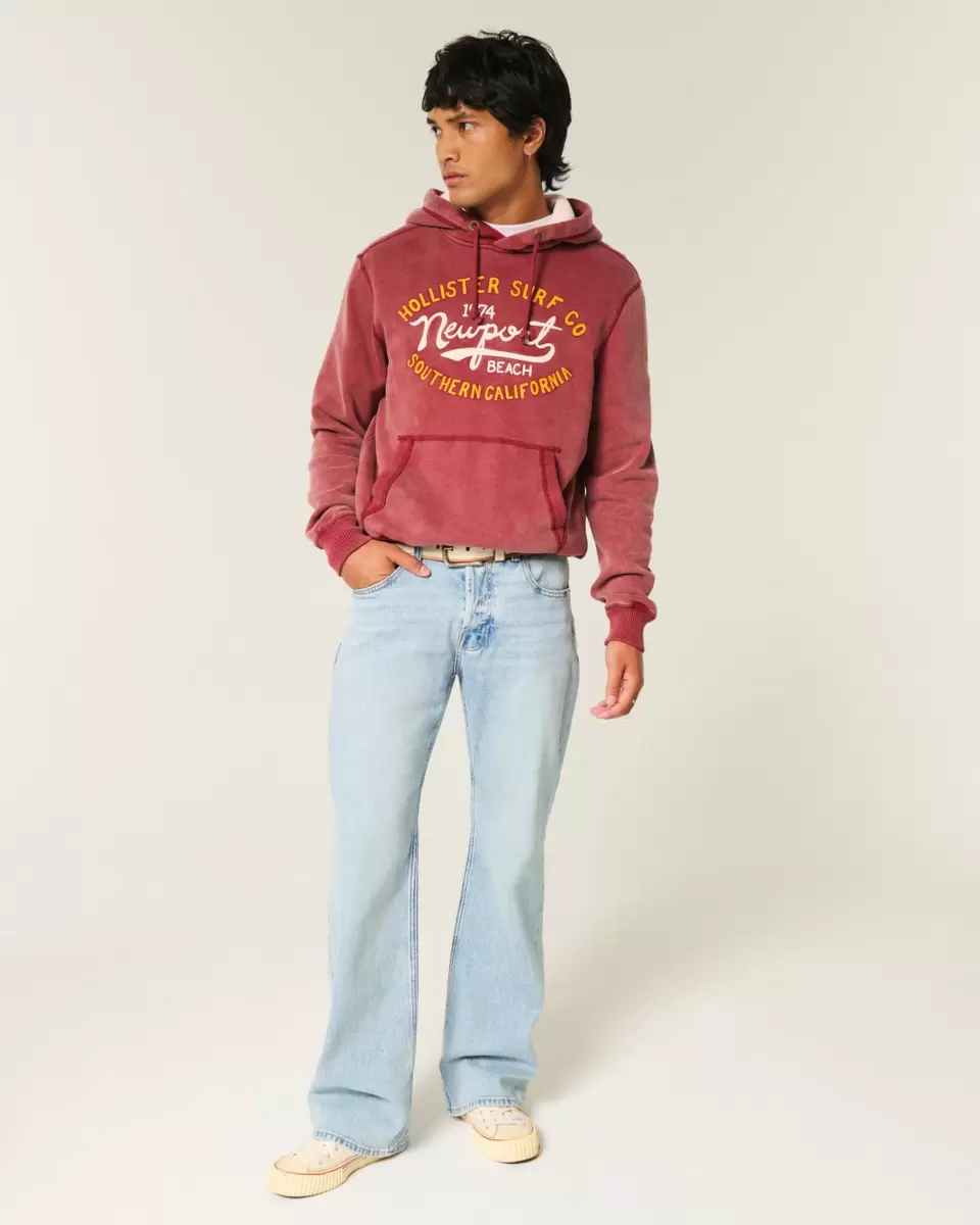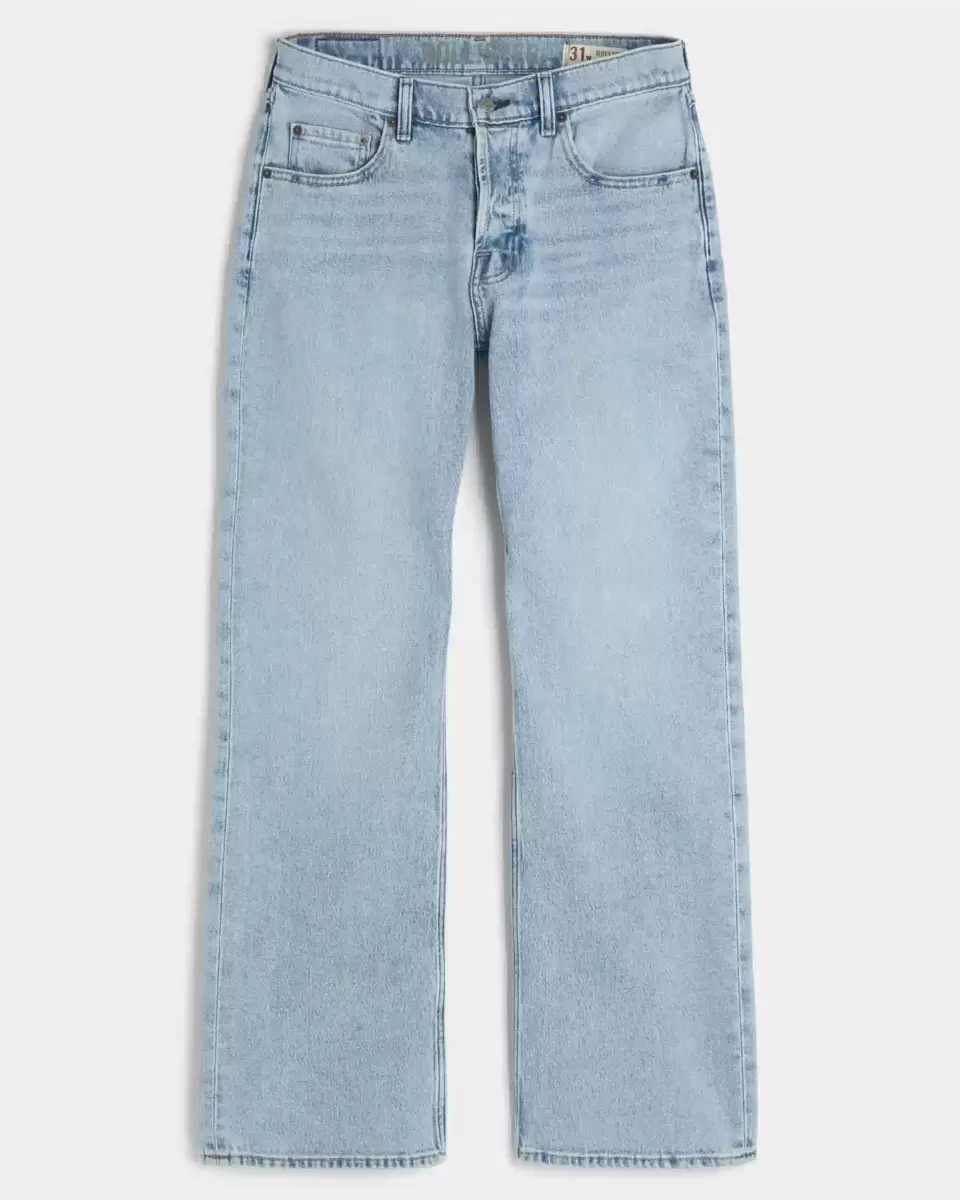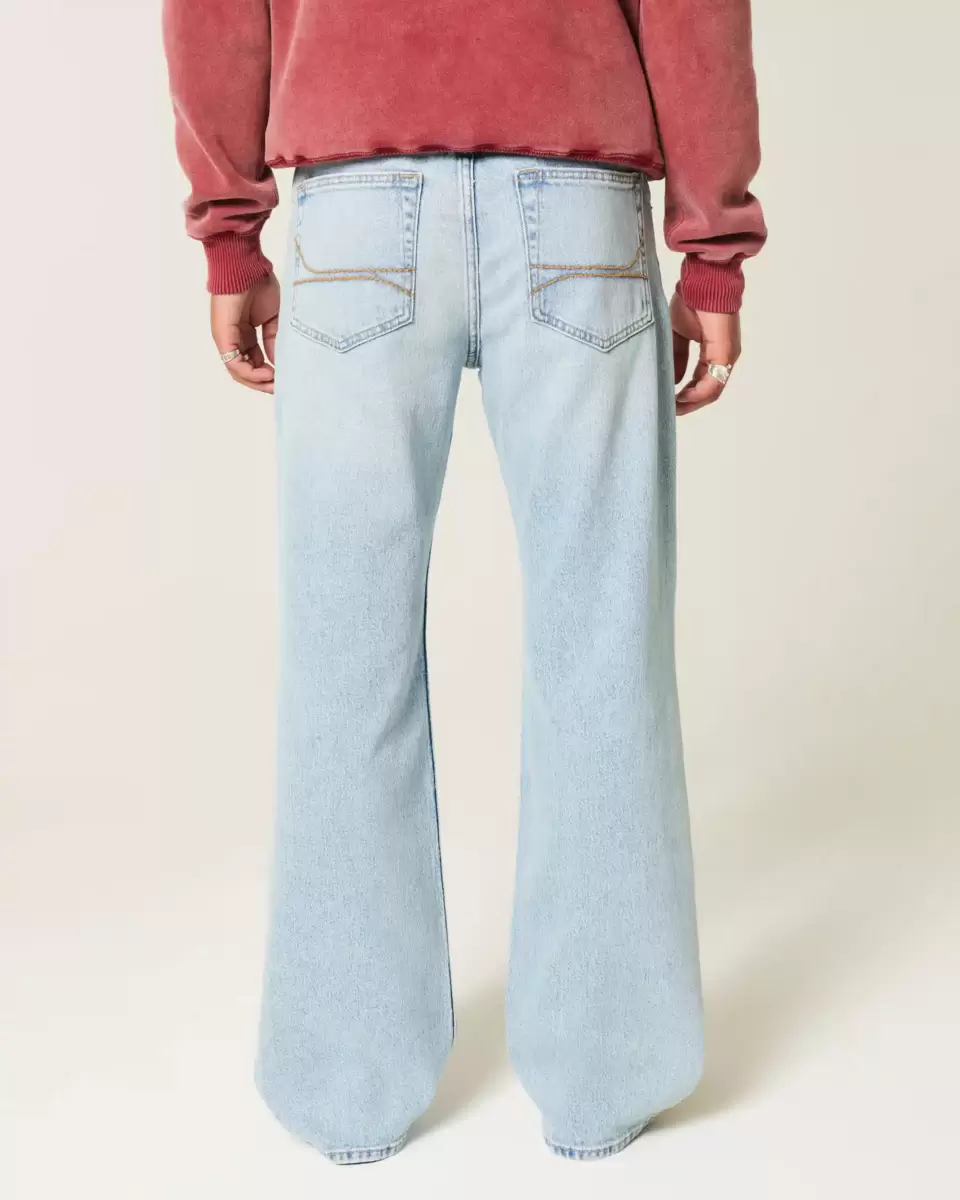 Jean en denim confortable, coupe décontractée et ouverture botte. Décoloration et effet moustaches. Braguette boutonnée. Tendance. Importé.