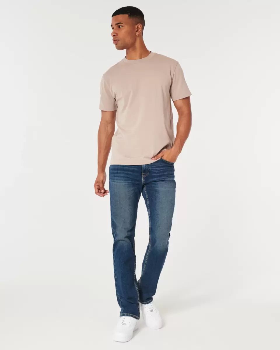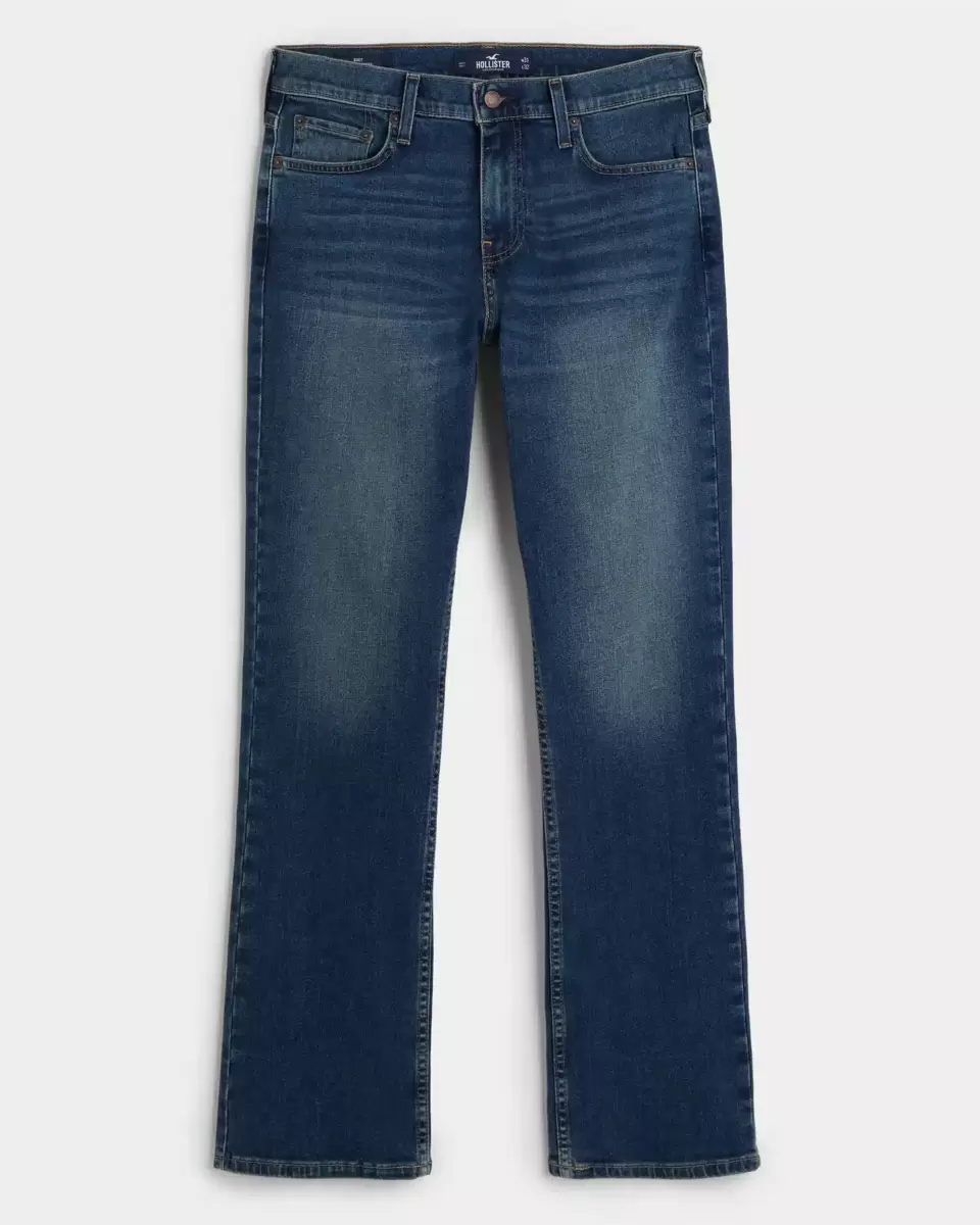 Conçu avec une coupe décontractée au niveau des hanches et des cuisses, avec une ouverture de jambe de 17,25 pouces, en denim délavé moyen en stretch Hollister Epic Flex, avec décoloration et moustaches, style cinq poches et broderie emblématique sur la poche arrière. Importé.