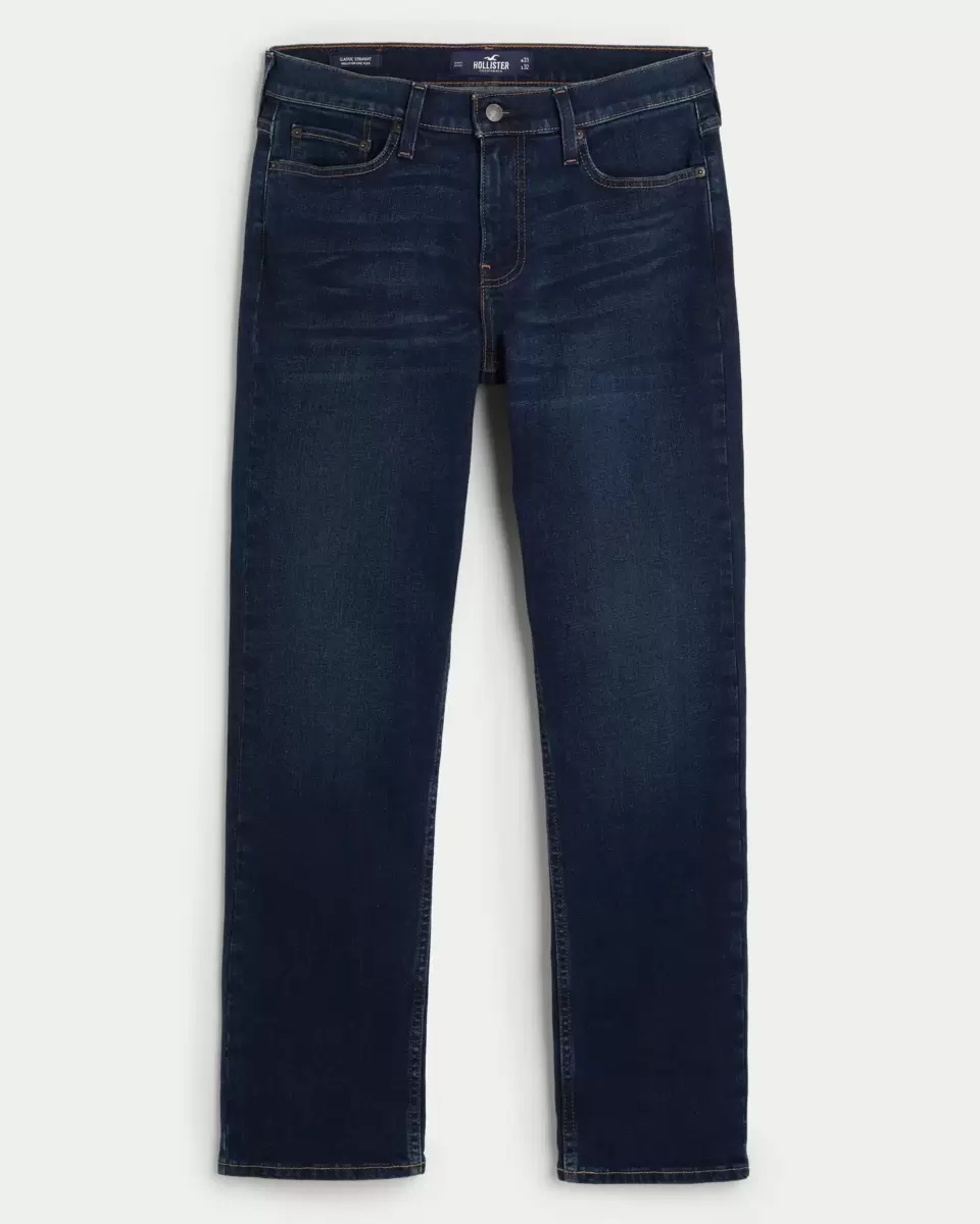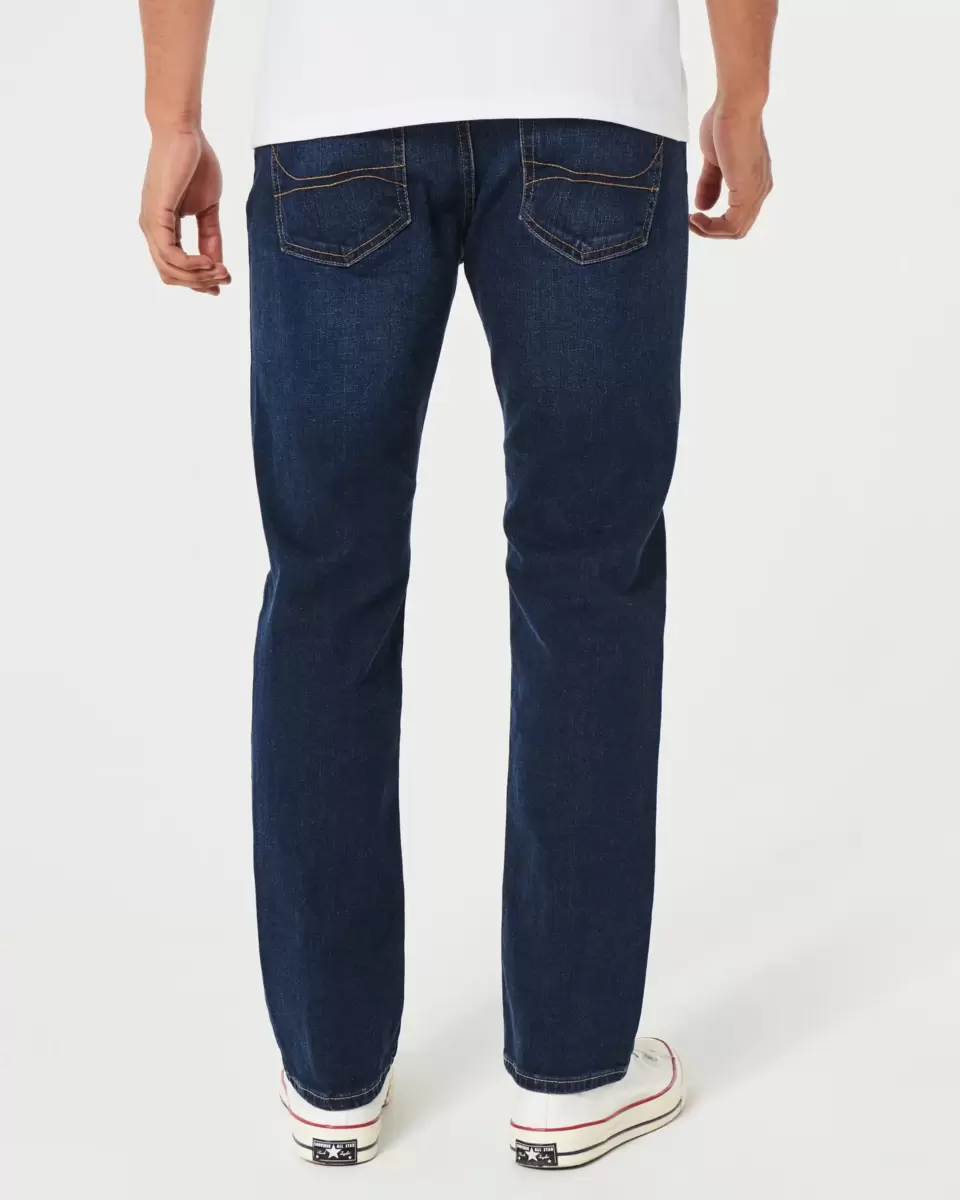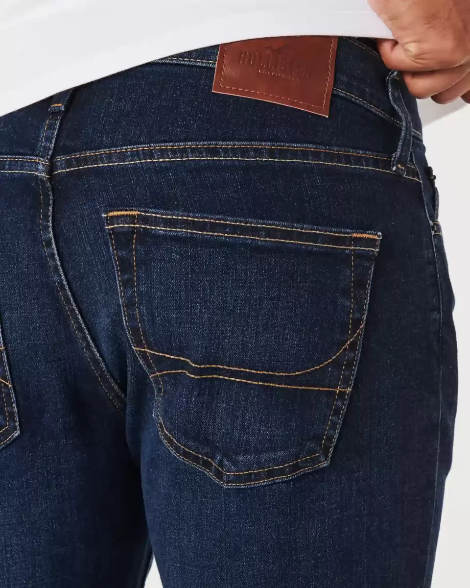 Conçu avec une coupe droite au niveau des hanches et des cuisses avec une ouverture de jambe de 16,75 pouces, avec un denim délavé foncé fabriqué avec du stretch Hollister Epic Flex, un style à cinq poches et un bas emblématique
