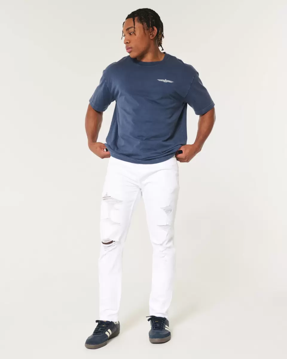 Coupe skinny plus ample au niveau des cuisses. Fabriqué en denim blanc Advanced Stretch ultra-confortable. Importé.