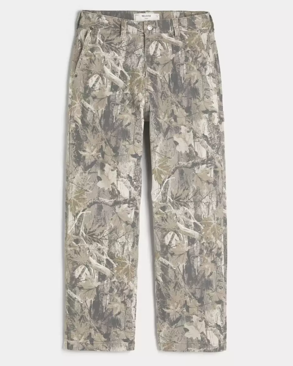 Pantalon en sergé ultra-confortable avec jambe ample, poches latérales supplémentaires et passant de ceinture côté gauche. Motif camouflage intégral. Importé.