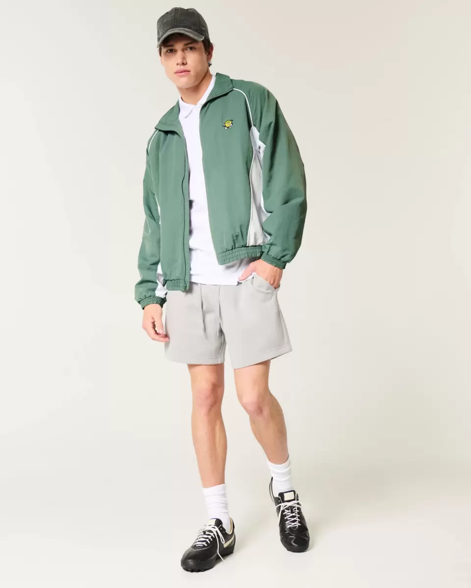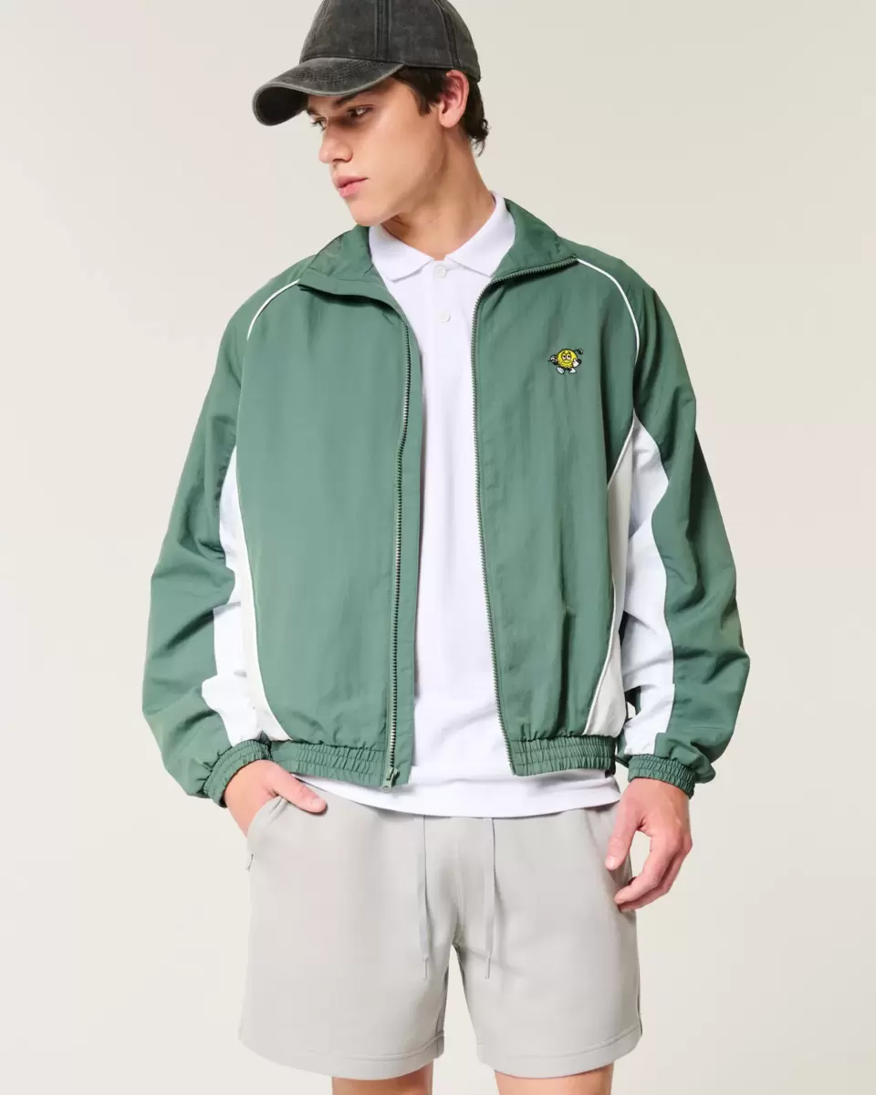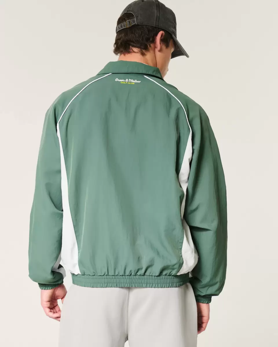 Une veste coupe-vent classique avec broderie graphique de golf sur la poitrine gauche et dans le dos. Fermeture zippée intégrale, col montant et ourlets à bandes.