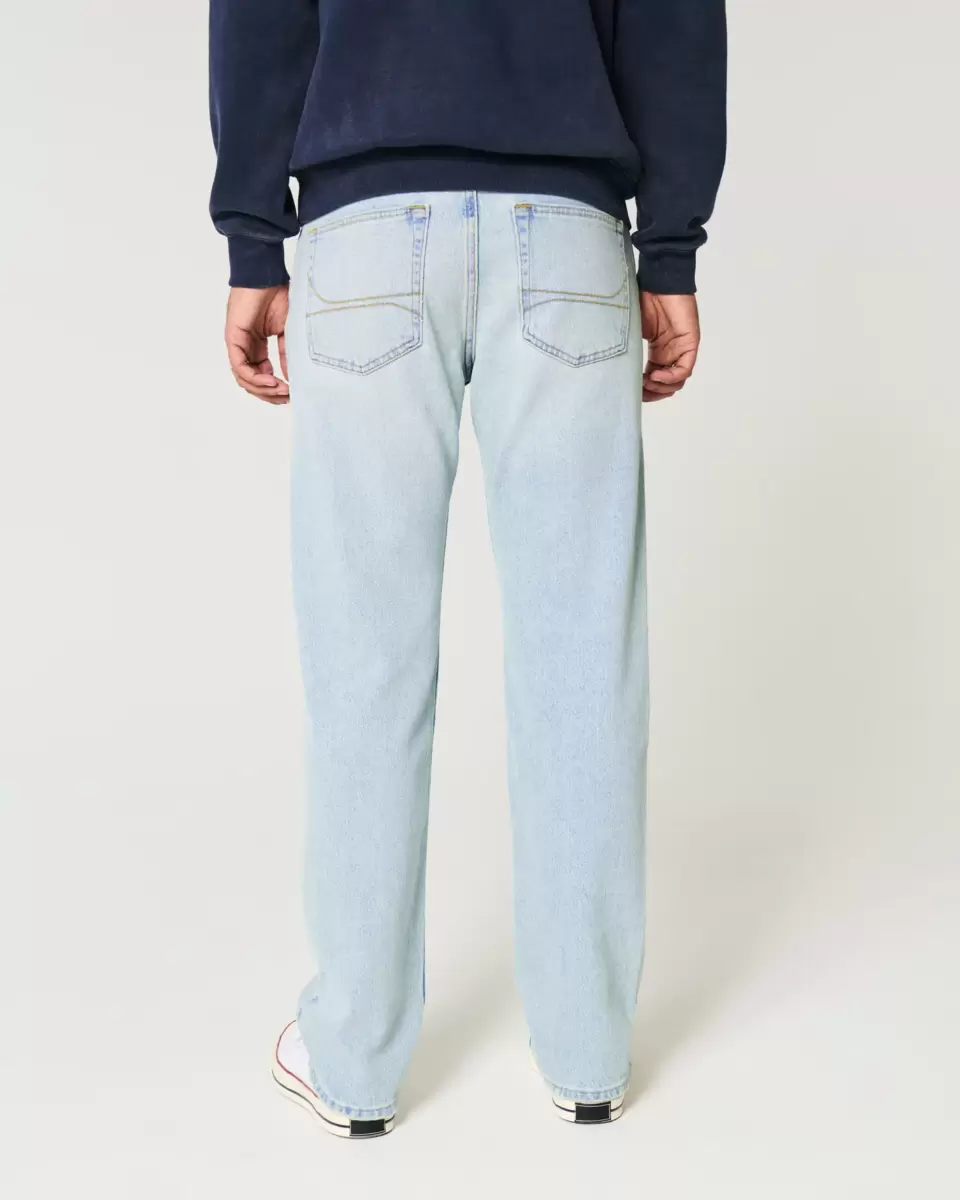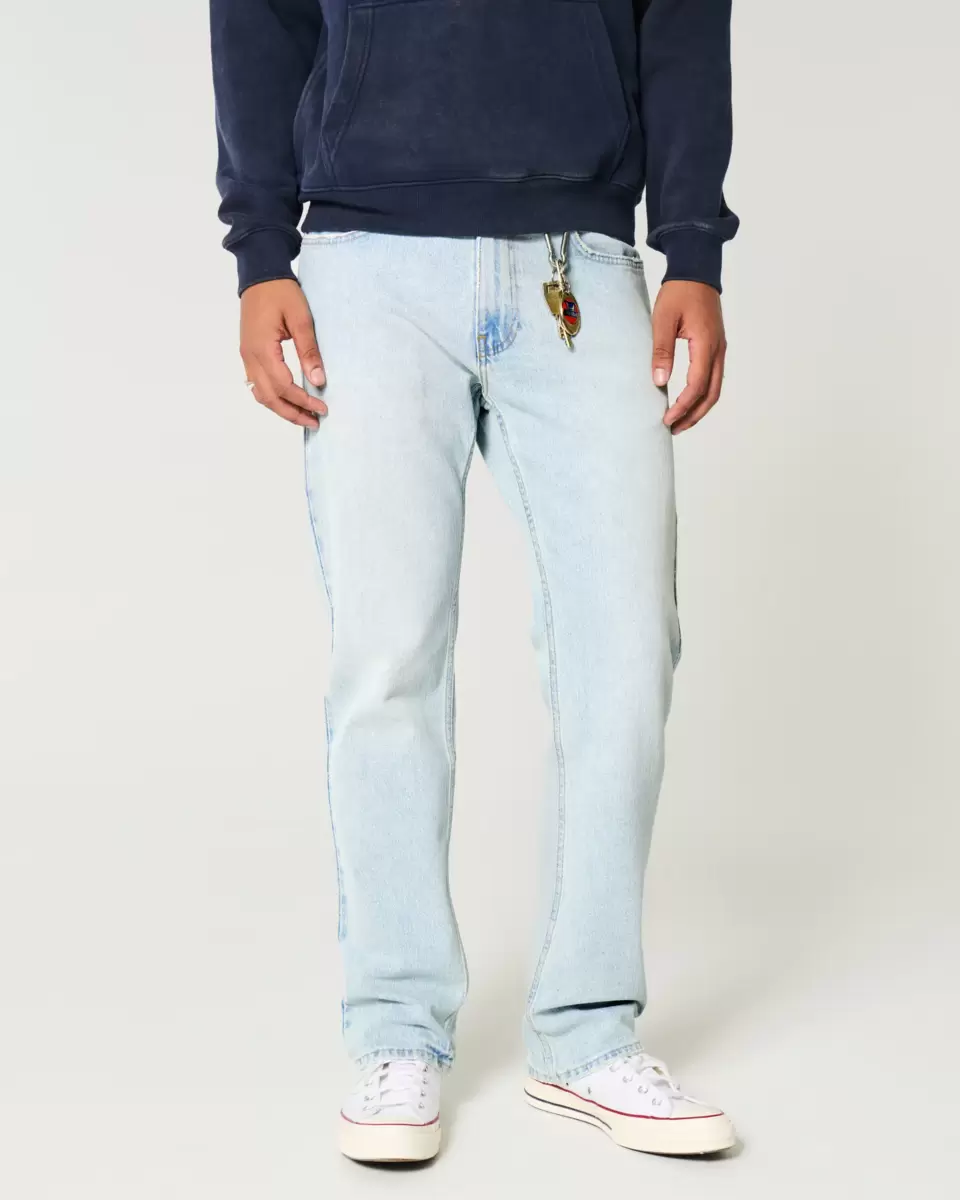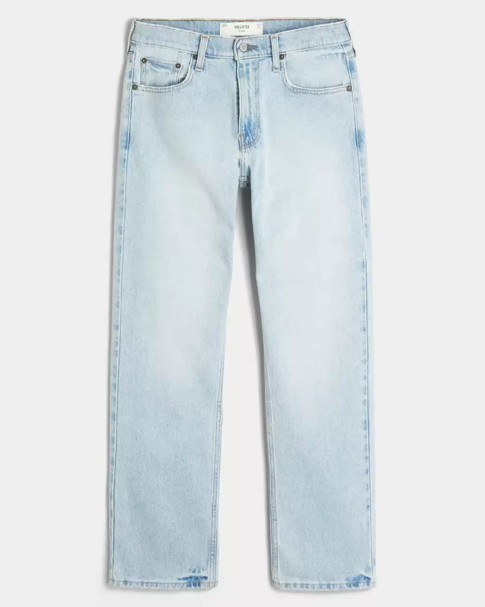 Jean confortable au délavage clair, coupe droite. Décoloration. Importé.