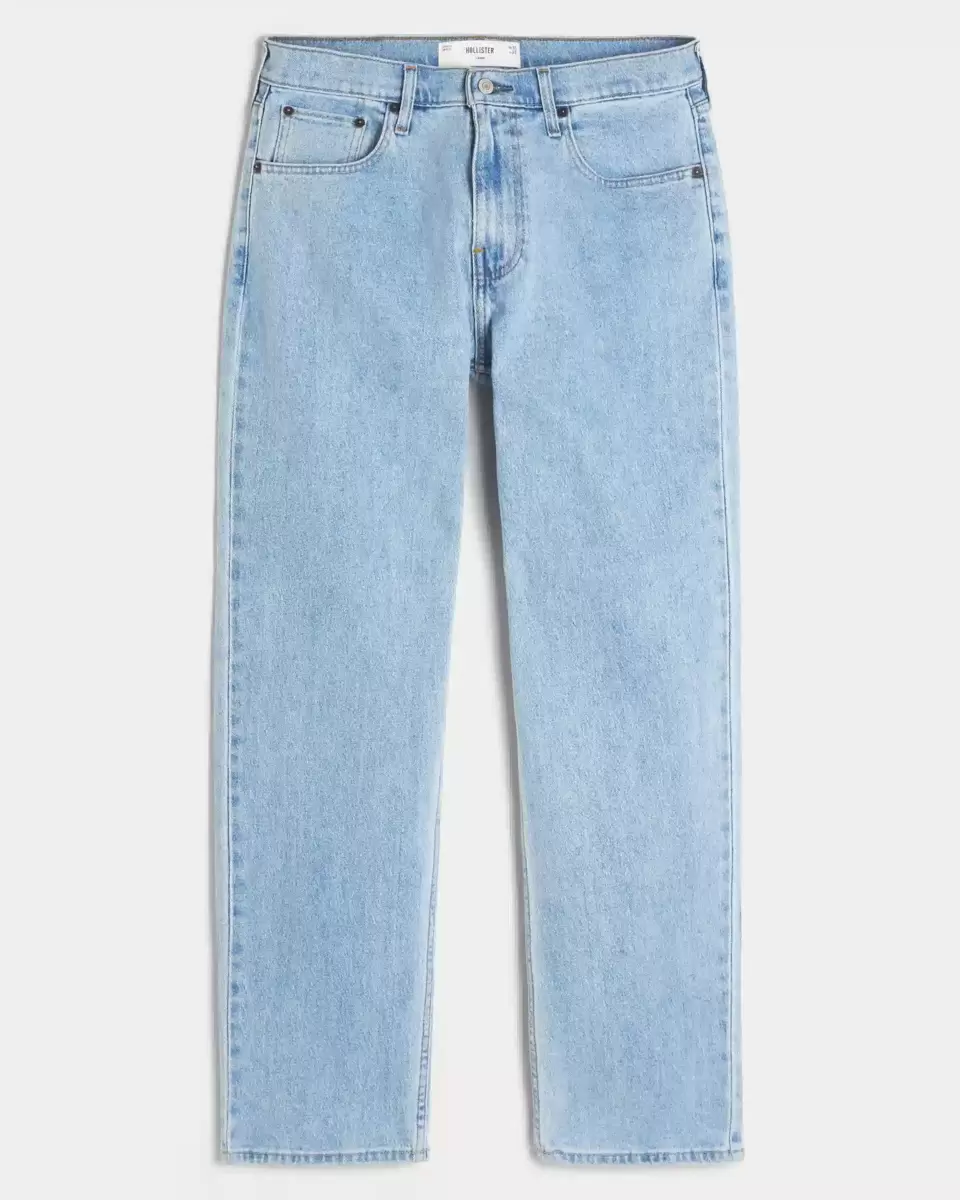 Jean en denim classique au délavage clair, conçu avec une jambe ample confortable.