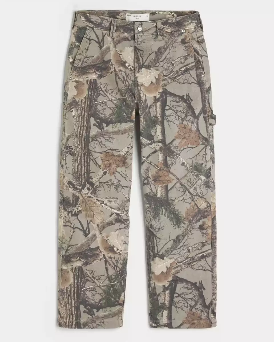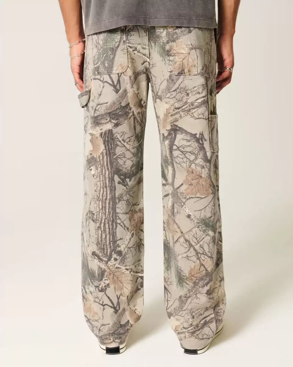 Jean confortable en denim avec jambe ample, passant de ceinture à gauche et poches supplémentaires. Motif camouflage intégral. Importé.