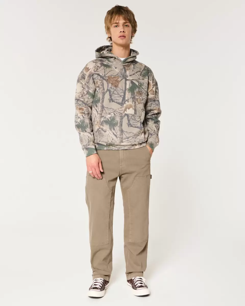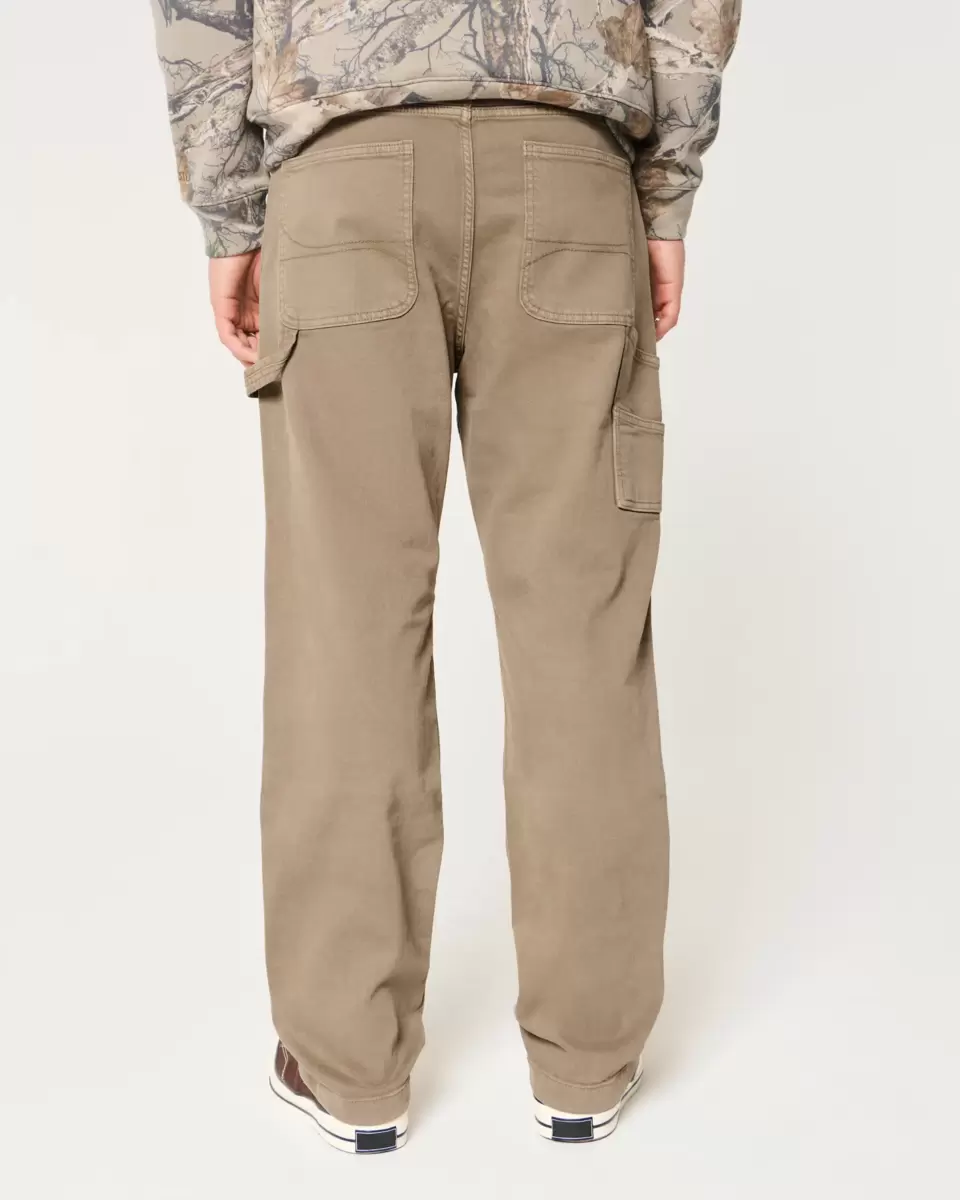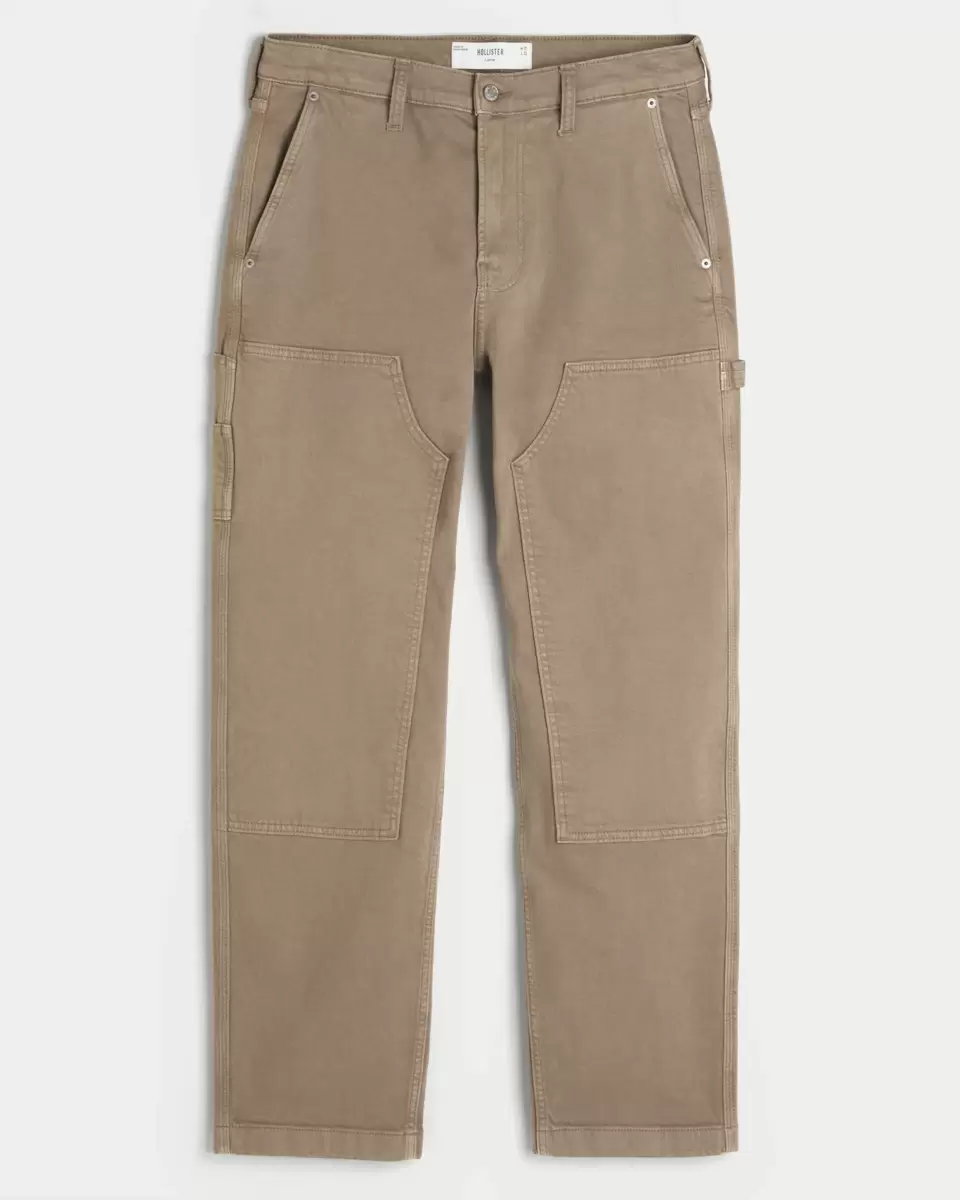 Jean classique de style charpentier marron, avec jambe ample et coutures renforcées au genou. Passant pour marteau à gauche, poches supplémentaires. Importé.