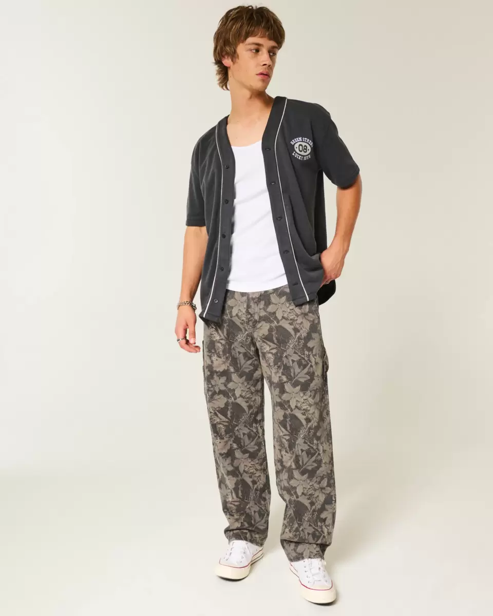 Super confortable et d’inspiration skateur, ce jean ample présente un motif camouflage intégral, une boucle de ceinture à gauche et des poches supplémentaires. Importé.