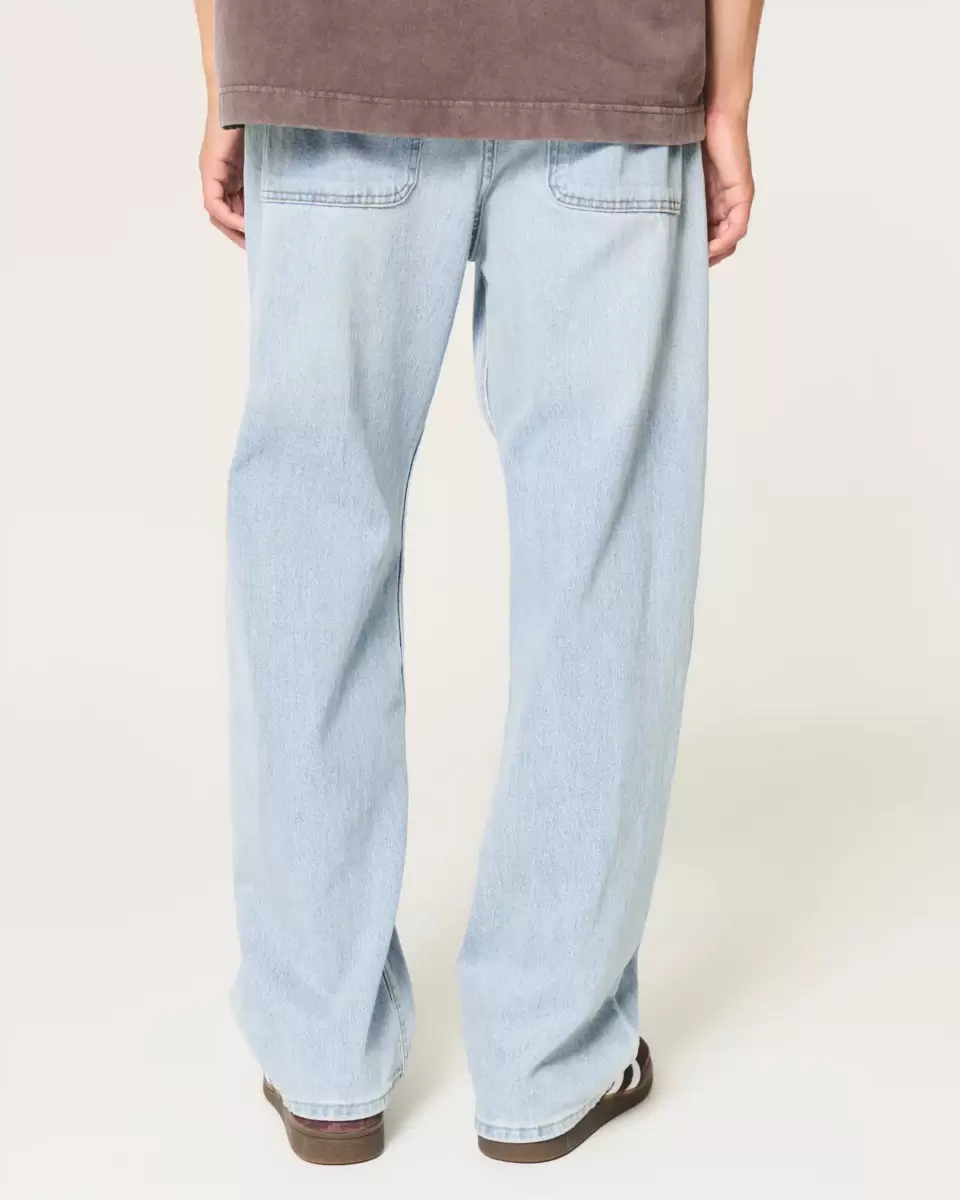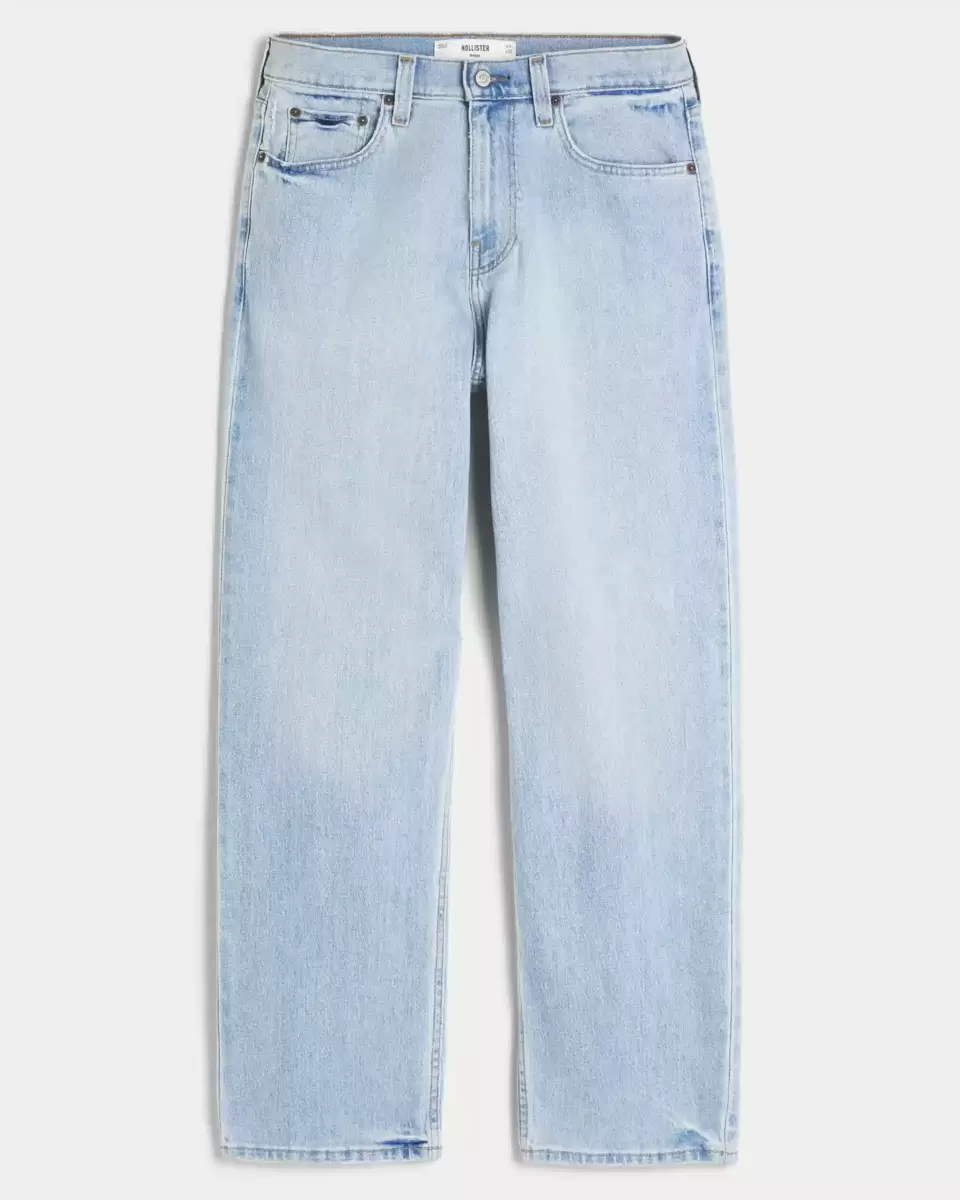 Jean classique et confortable, coupe ample. Denim délavé clair. Importé.