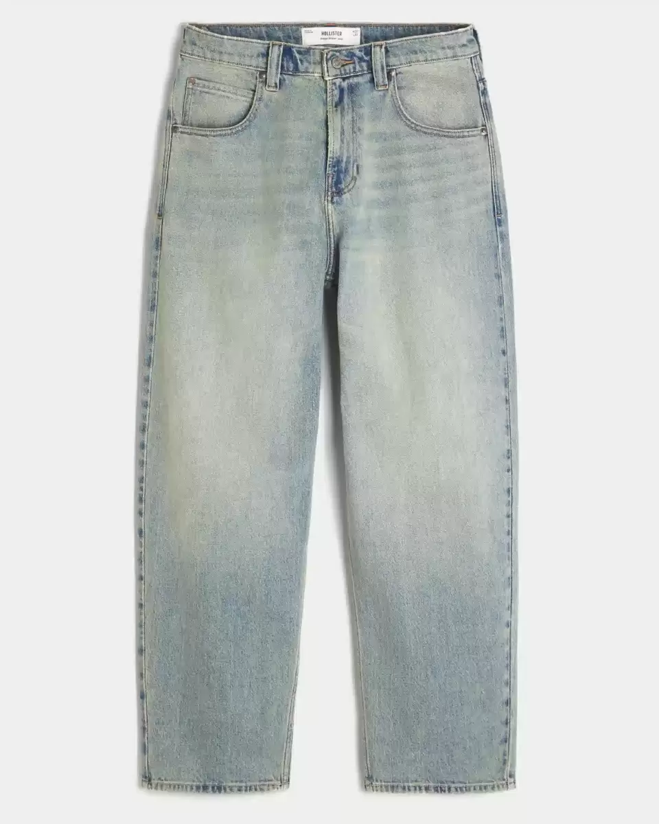 Jean skater classique en denim délavé clair, coupe ample. Effet délavé, effet moustaches, motif dés brodé sur la poche arrière. Importé.