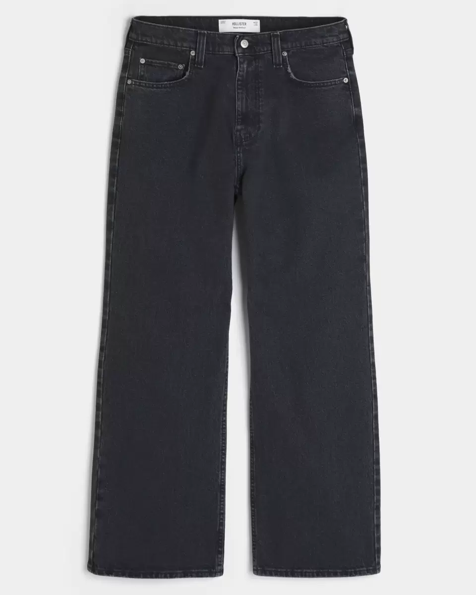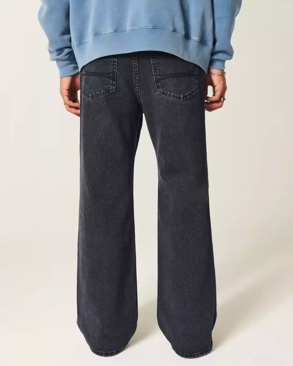 Jean confortable en denim noir délavé, avec une jambe ample et une ouverture bootcut. Style emblématique à 5 poches. Importé.