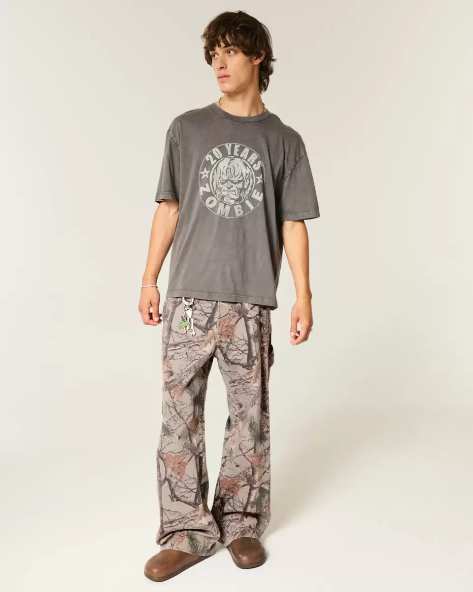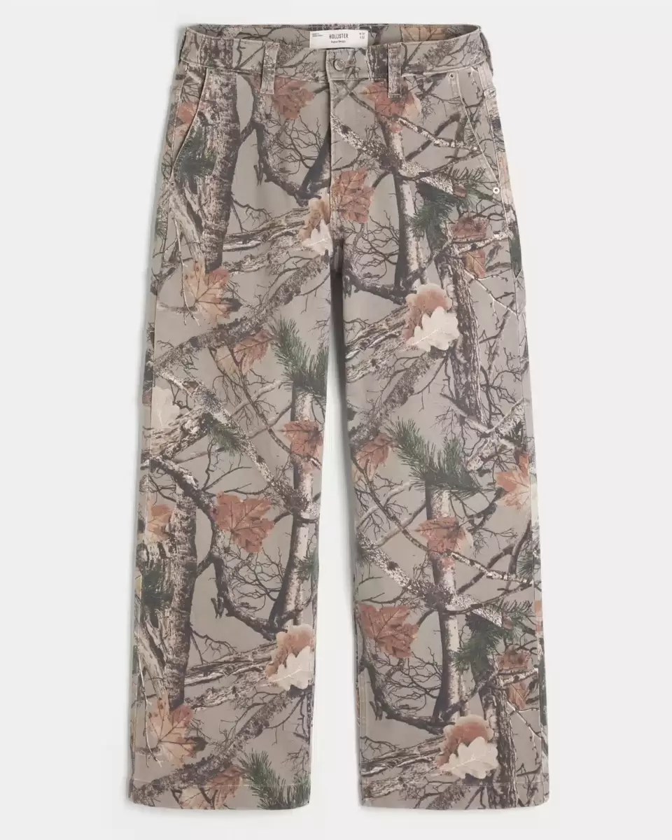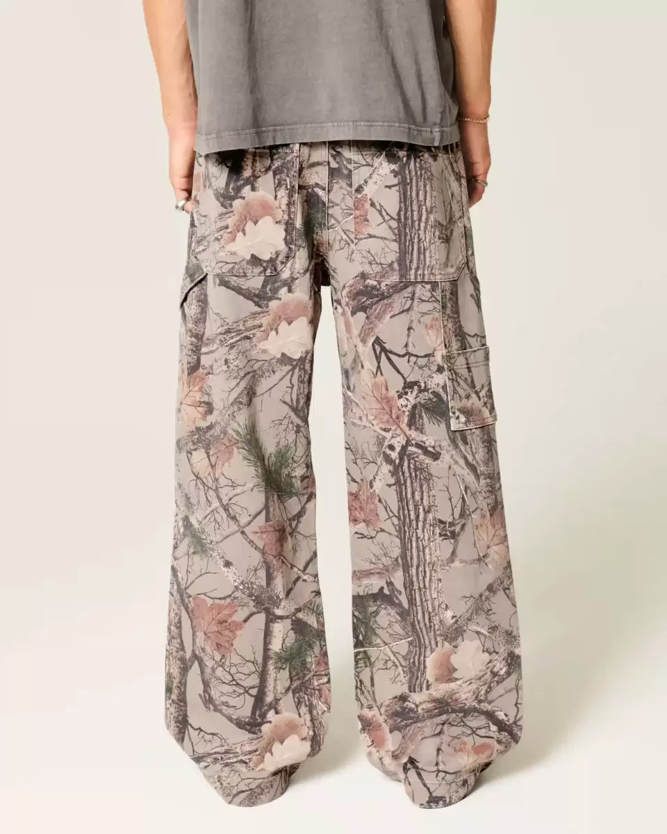 Jean confortable en denim orné d’un motif camouflage intégral, avec une jambe ultra-baggy, une patte de boutonnage à gauche et des poches supplémentaires. Importé.