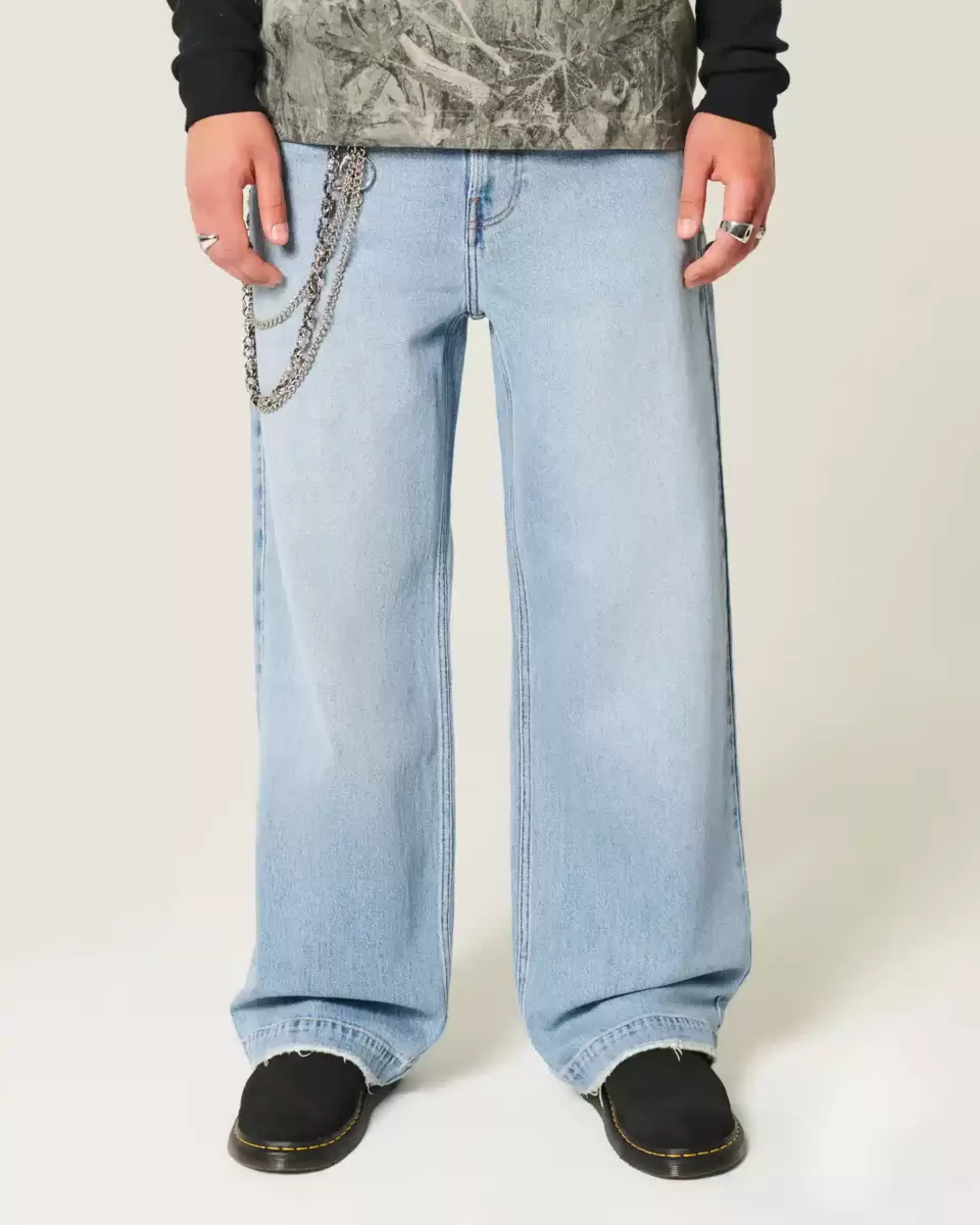 Jean confortable en denim légèrement délavé, coupe ultra ample. Décoloration, broderie astronaute sur la poche gauche. Importé.