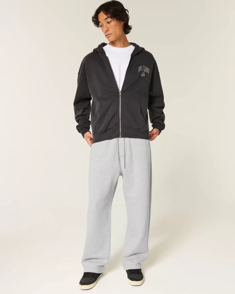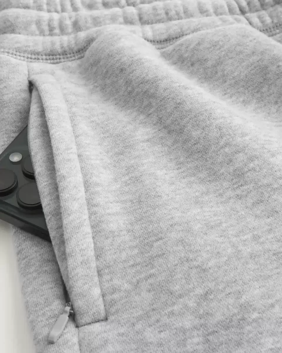 Pantalon de survêtement ultra doux avec jambe ample. Cordon de serrage à la taille, poches et poche droite zippée. Importé.