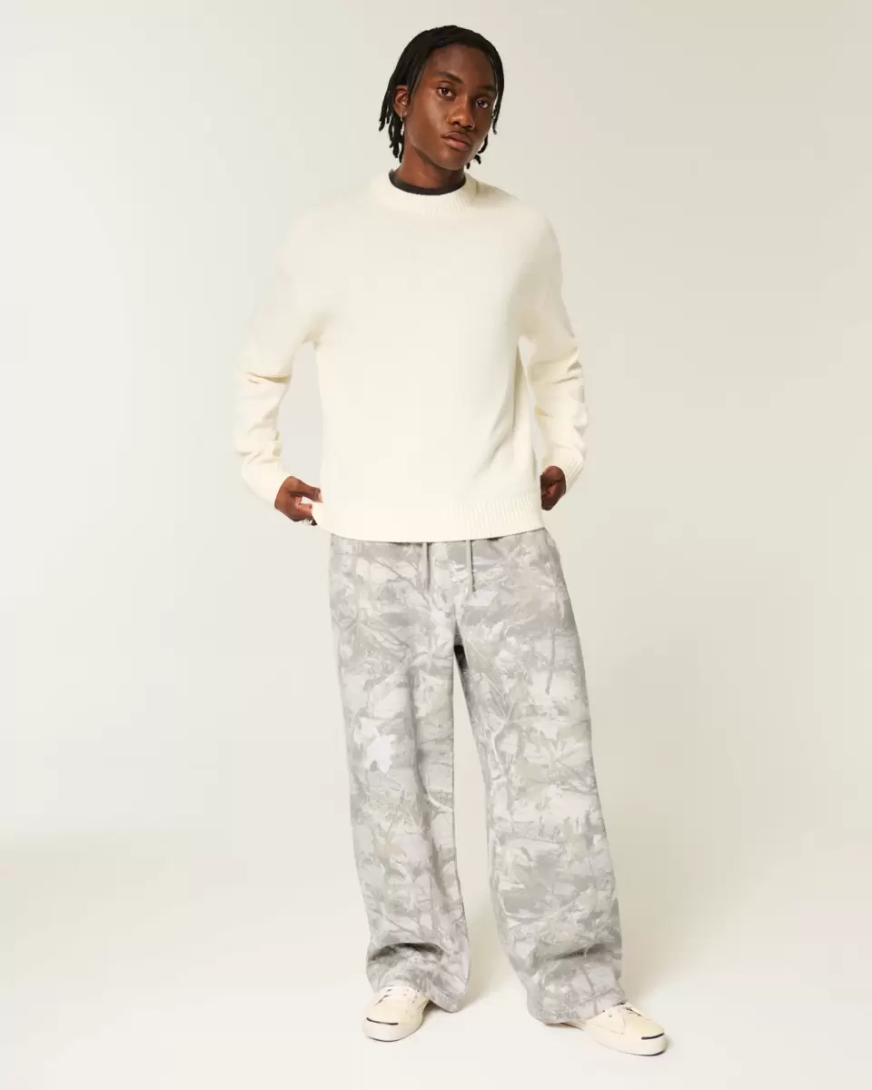 Pantalon de survêtement confortable en polaire avec jambe ultra-baggy et cordon de serrage à la taille. Poches, poche droite zippée, motif camouflage intégral et logo brodé.