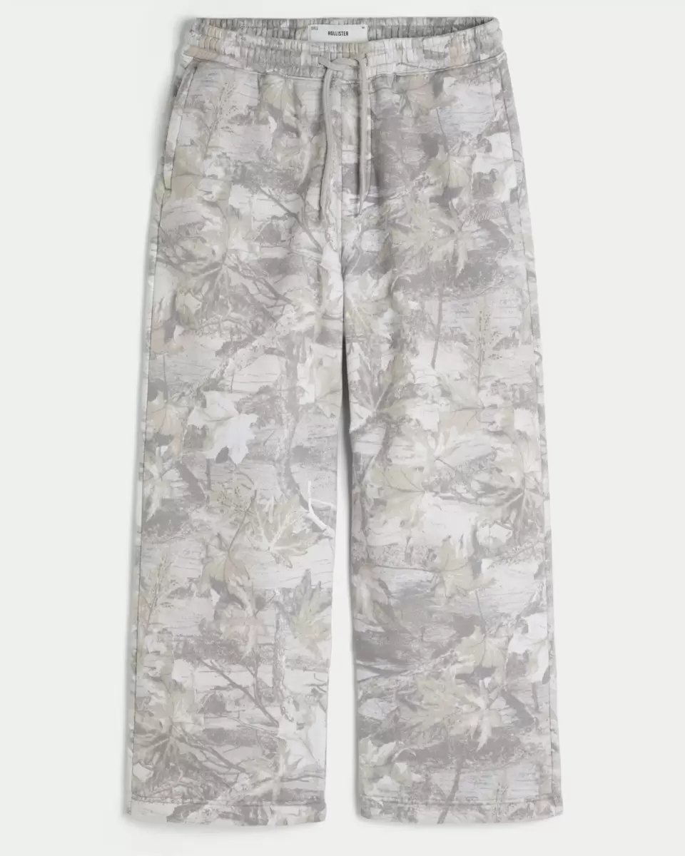 Pantalon de survêtement confortable en polaire avec jambe ultra-baggy et cordon de serrage à la taille. Poches, poche droite zippée, motif camouflage intégral, logo brodé. Importé.