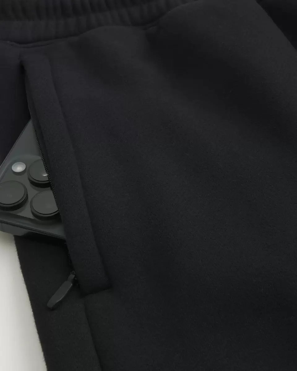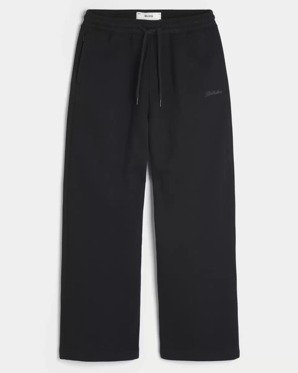 Pantalon de survêtement confortable en polaire avec jambe ultra-baggy et cordon de serrage à la taille. Poches, poche droite zippée, logo brodé. Importé.