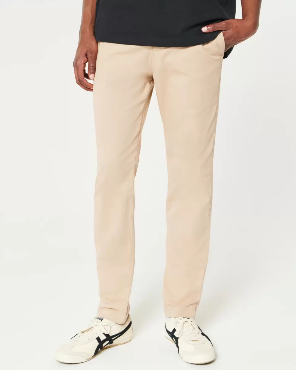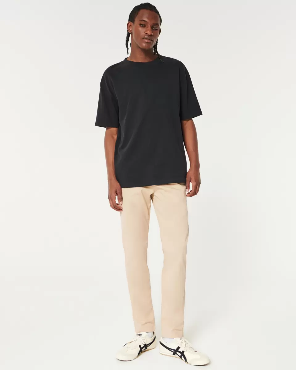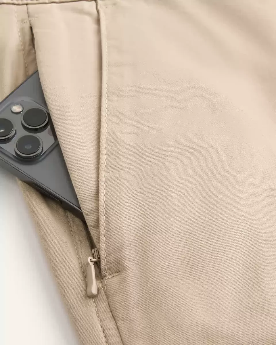 Pantalon chino en sergé extensible ultra-confortable, coupe slim de haut en bas. Poches, poche droite zippée. Importé.